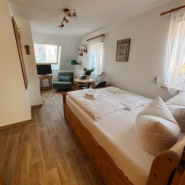 Alle Zimmer der Ferienwohnungen und der Pension sind mit Dusche, WC sowie Farb-TV ausgestattet. Des Weiteren verfügen wir über ein extra Frühstückszimmer.