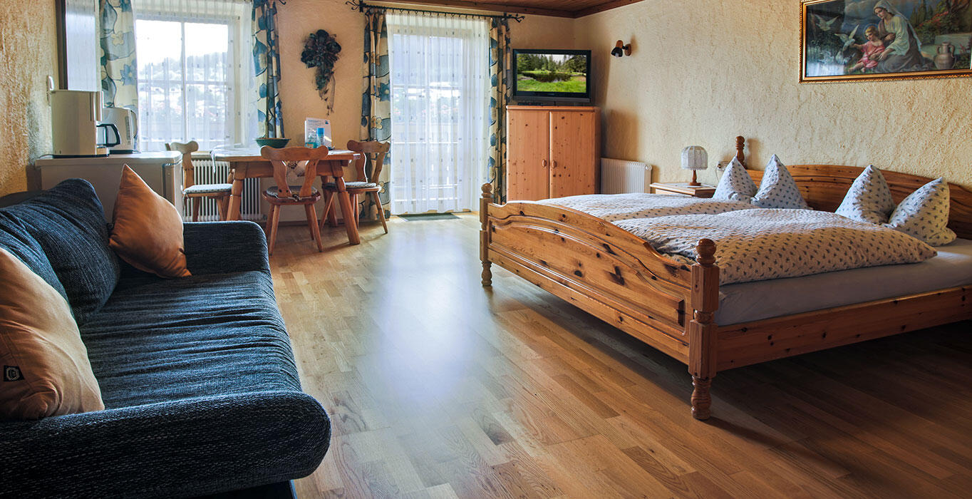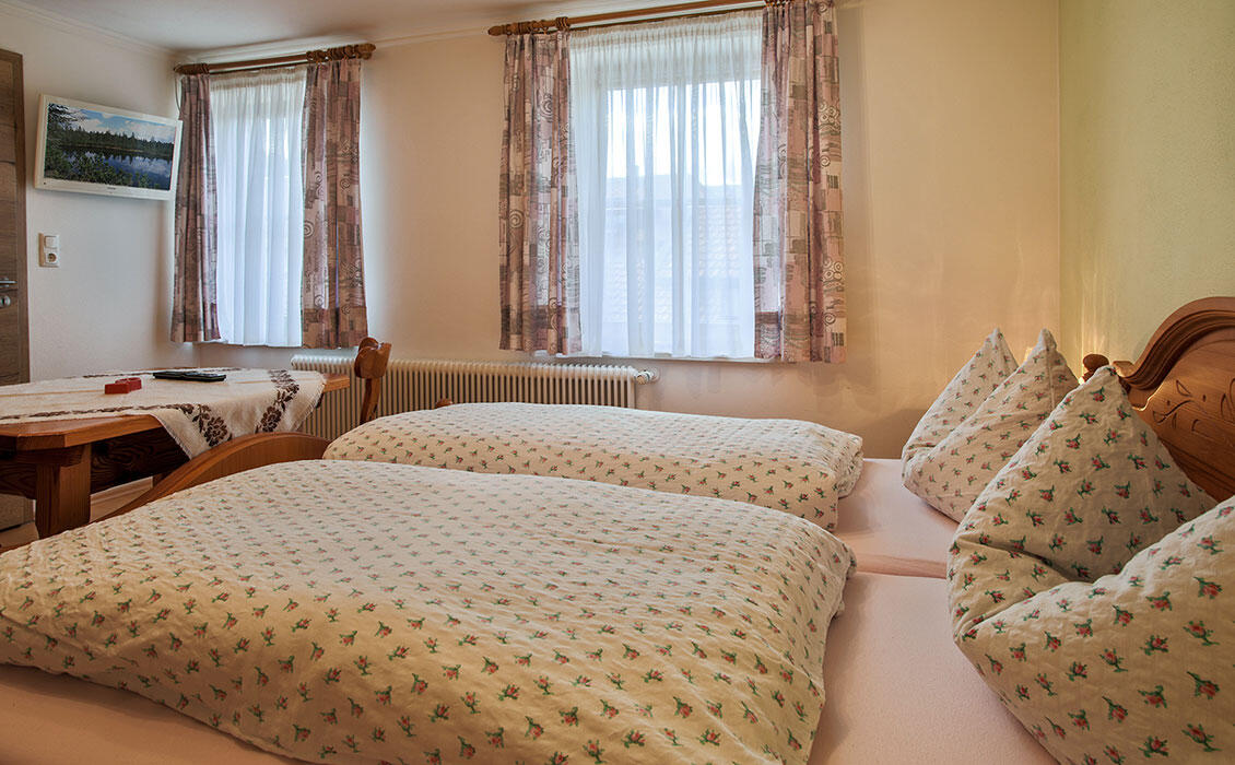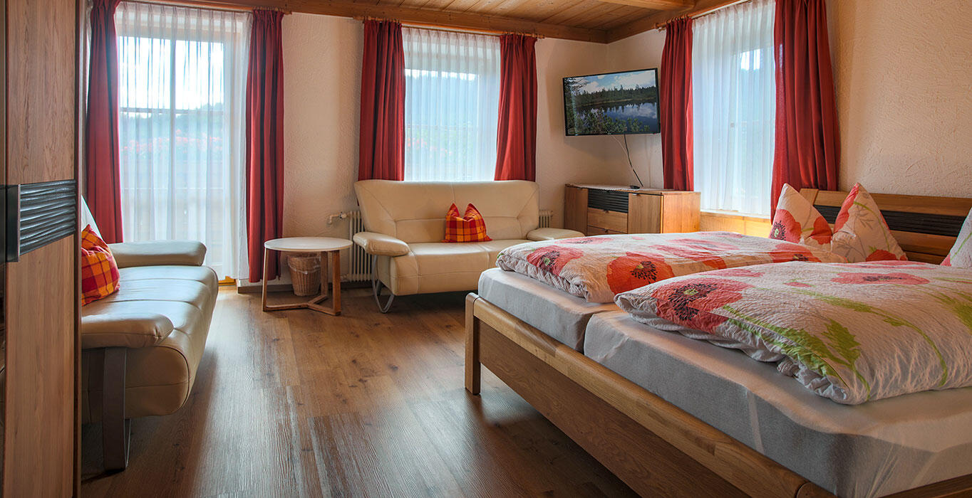 Unser Bauernhof bietet Ihnen modern eingerichtete Gästezimmer mit Dusche/WC, Zentralheizung und Balkon und komfortable, große Ferienwohnungen.. Auch in unserem gemütlichen Aufenthaltsraum mit Sat-TV werden Sie und Ihre Kinder sich wohlfühlen. Unsere Gästezimmer sind unterschiedlich in Größe und Einrichtung. Alle haben Dusche/WC, Zentralheizung und Balkon. Die kleinen und großen Ferienwohnungen für bis zu 6 Personen mit jeweils 3 Schlafzimmern und Dusche/WC sind komfortabel und komplett eingerichtet und 70 bis 100qm groß.