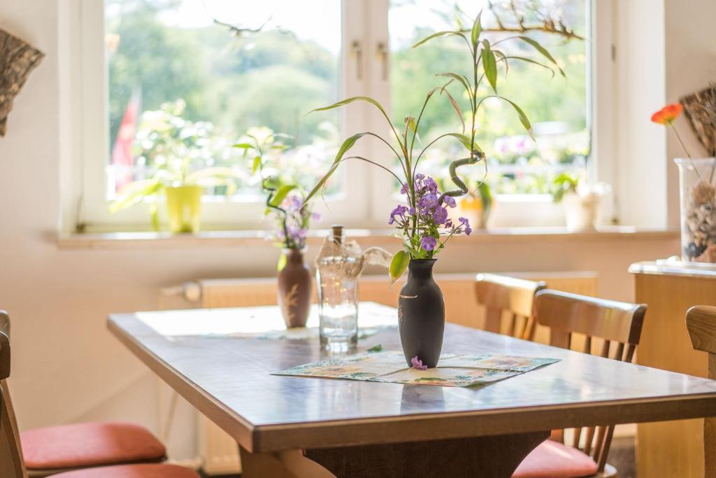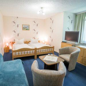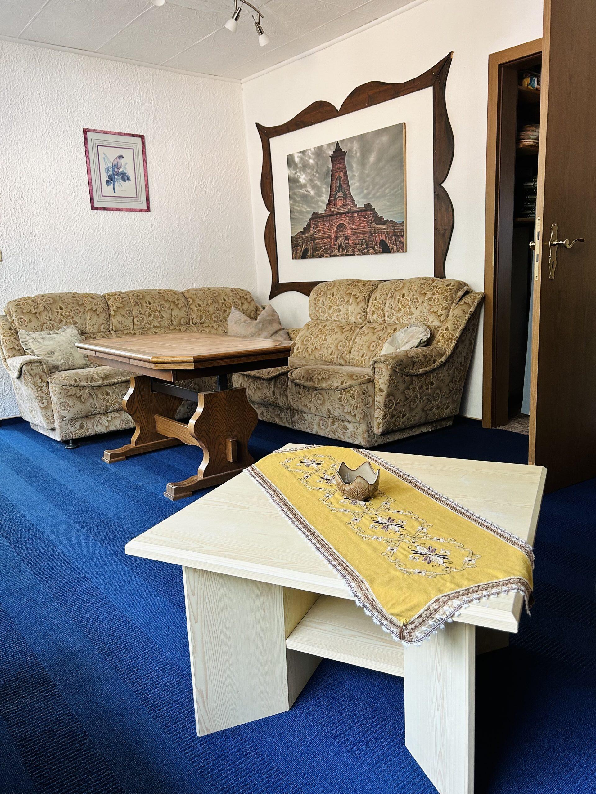 Unsere Zimmer sind bis auf 1 alle 12 bis 14 qm groß und mit Dusche/WC und Sat-TV ausgestattet. WLAN -Nutzung ist möglich Unsere Ferienwohnung liegt im Kyffhäuser Naturpark, sie ist ausgestattet mit Freiterrasse in Waldlage, Wohnzimmer, Kinderzimmer, Schlafzimmer, Küche, Dusche und WC.