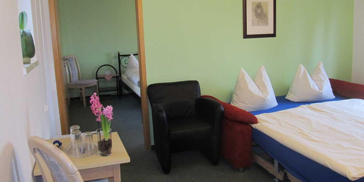 Wir haben Appartements bzw. Familienzimmer, die von 1-5 Personen genutzt werden können . Alle Appartements haben Schlafzimmer mit 2 Betten/ Doppelbett, Wohnzimmer mit Aufbettungsmöglichkeit, DU /WC und sind mit Zimmertelefon, Kabel-TV und Radiowecker ausgestattet. 2 Appartements haben ein zusätzliches Einzelzimmer. Ein Zimmer ist nach baulichen Veränderungen entstanden und verfügt über ein französisches Bett, einen Schreibtisch und Dusche/WC.