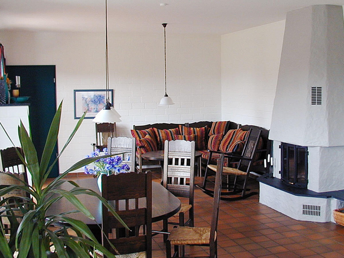 Großzügig aufgeteilt auf über 160 qm Wohnfläche, befinden sich in den beiden Ferienhäusern je ein Wohnzimmer mit Kamin, Worpsweder Möbeln, Eßtisch und Sitzecke.