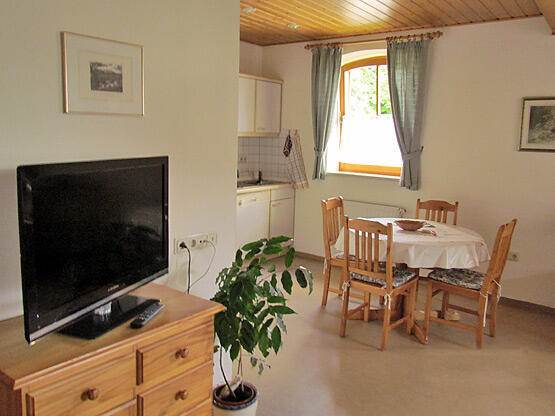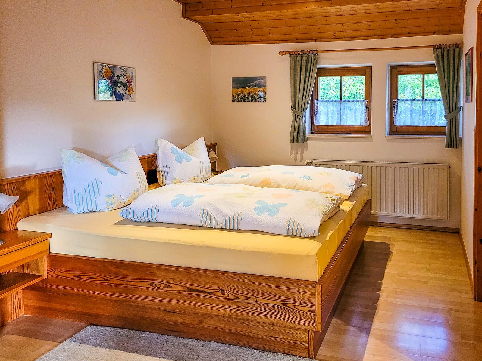 "Schweinestall" und "Taubenschlag" sind unsere Studios für Zwei. "Kuhstall" und "Heuboden" haben zwei Schlafzimmer. Hier können bis zu fünf Personen wohnen. Unser "Hühnernest" ist mit zwei Bädern ausgestattet und bietet Platz für sechs Personen. Unsere gemütlichen Wohnungen sind komfortabel eingerichtet und ausgestattet: Komplett ausgestattete Küche (zum Teil mit Spülmaschine) TV und CD-Player mit Radio Bettwäsche und Handtücher Für unsere kleinen Gäste stellen wir auch gerne ein Kinderbett auf Freundliche, helle Doppelzimmer mit Dusche und WC und reichhaltigem Bauernfrühstück.