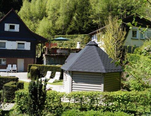Haupthaus: Ca. 110,00 qm Wohnfläche Dieses hat eine Wohnfläche von ca. 45 m² und ist bis zu 4 Personen geeignet. Es bietet einen schönen Ausblick aus einem großen Panoramafenster mit Blick auf das Tal und den sofort angrenzenden Wald. Zur Ihrer Verfügung stehen ein Wohnzimmer mit Essecke, Küchenzeile, 2 Schlafzimmer (mit 2 Einzelbetten (auch als Doppelbett zusammen zu stellen) und ein Doppelbett), eine Dusche mit WC und eine große Terrasse. GANZ NEU: AUSSENSAUNACOTA (5-8 Personen)mit AUSSENDUSCHE (kalt)und neuer Liegeflächen einschließlich neuer Beleuchtung. Terrasse, Wiese, Garten, Grill, Liegestühle, eigenem Stellplatz Im Haus am Wald einige Meter entfernt finden Sie die Sauna, den Massageraum, das Solarium, der Fitnessraum, Tischtennisplatte, Kinderspielgeräte, Spielhaus mit Tischkicker, Trampolin, Fahrradverleih, Badmintonnetz, den DSL-Internetanschluss usw. Die Größe des Objektes beträgt: 155. qm.
