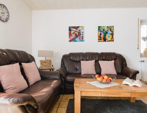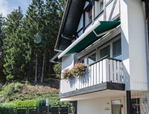 Es ist ein allein zu bewohnendes Ferienhaus mit großer Terrasse mit Grillkamin, einem Balkon und einer Liegewiese mit Kneipp-Tretbecken und Garten- und Ruhemöbeln. Dieses Haus erstreckt sich über 2 Etagen. Im unteren ebenerdigen Bereich befindet sich ein kleiner Wellnessraum mit Fitnessraum, einer Sauna, welche auch nach Voranmeldung von anderen Gästen der Häuser genutzt werden kann, wobei die Gäste in Haus am Wald absoluten Vorrang genießen. (Saunatücher werden nicht gestellt) und einer Gästetoilette, in der 1. Etage ein großzügiger Die Nutzung des Fitnessraumes, Fahrräder (davon ein E-Bike), Tischtennis, Badmintonplatz, Kneipp-Tretbecken sowie W-LAN ist kostenlos. Selbstverständlich ist auch der Besuch unseres Kinderspielhauses mit Kicker kostenfrei. Parkplätze befinden sich in unmittelbarer Nähe. Seit 2010 bieten wir verschiedene Massagen im neu erstellten hauseigenen Massagebereich. Kinderbett und Hochstuhl werden kostenlos zugestellt Die Größe des Objektes beträgt: 110. qm.