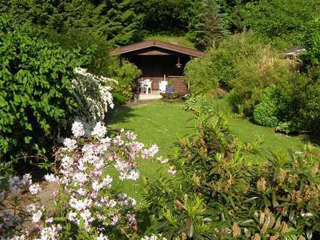 Eine große Terrasse mit Gartenmöbeln, Liegestühlen, Grill und Liegewiese verschönern den verdienten Urlaub. Blick von der Terrasse in den Garten Das gemütliche Wohnzimmer verfügt über einen Flachbildschirm mit Sat -TV eine Hi-Fi Micro DVD Anlage. Internetzugang vorhanden. Die Küche mit Essecke ist komplett ausgestattet. E-Herd mit Ceranfeld und Backofen, Geschirrspüler und eine Mikrowelle erleichtern die Arbeit. Ausreichendes Geschirr, Töpfe und elektrische Geräte sind vorhanden. 2 Schlafzimmer bieten 2 - 4 Personen einen erholsamen Schlaf. Bettwäsche ist inkl. Je Schlafzimmer ist ein Zustellbett möglich. Auf Wunsch 1 Kinderbett. Betten stehen im 2. Schlafzimmer getrennt.