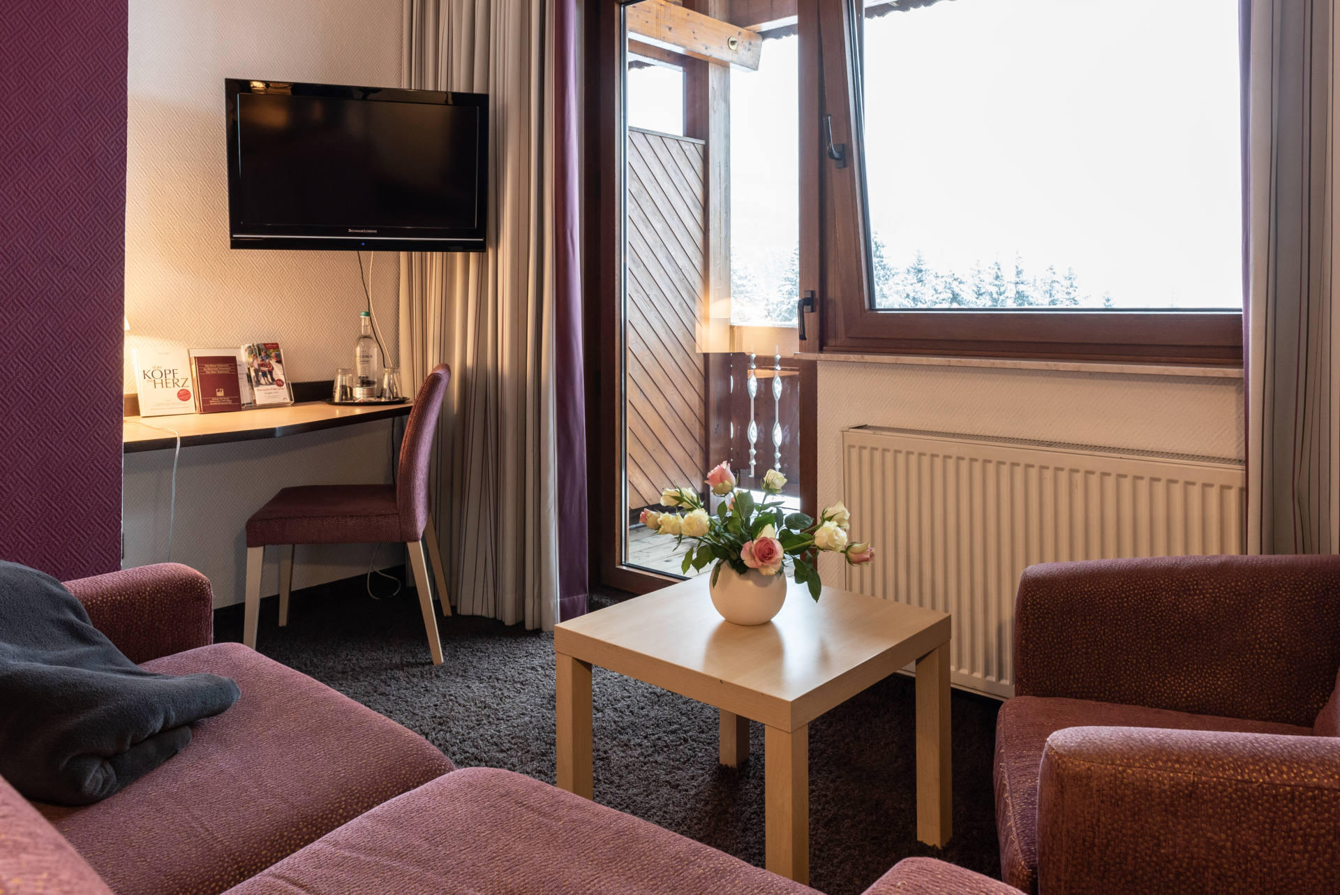 Einzelzimmer In unseren gemütlich eingerichteten Einzelzimmern, mit Balkon fühlen Sie sich wie zu Hause, da sind Wohlbefinden und Entspannung garantiert. Jedes der Zimmer verfügt über kostenloses WLAN sowie einer Sitzecke und einem Schreibtisch. Lassen Sie sich von unserem Personal mal so richtig verwöhnen. Unser Junior Doppelzimmer können Sie auch als Einzelzimmer buchen! Appartement Besonders für Familien geeignet ist das mit hellen Farbtönen arrangierte Appartement. Es bietet Platz für bis zu 5 Personen und verfügt über zwei getrennte Räume, die in Schlaf- und Wohnbereich aufgeteilt sind. Auf dem Balkon oder der Terrasse können Sie einfach mal die Seele baumeln lassen und den Alltagsstress hinter sich lassen, während Sie den herrlichen Blick über Willingen genießen. Luxus-Suite: Traumhaft entspannen Sie suchen Luxus und Entspannung? Dann ist unsere Luxus- Suite genau das richtige für Sie. Sie verfügt über ein supermodernes Bad mit Duschtempel und Infrarot-Kabine. Schöne Träume genießen Sie im Schramm- Himmelbett und die freistehende Whirlpool-Badewanne läd zum entspannen ein. Freuen Sie sich auf unvergessliche Stunden in unserer Entspannungs-Suite. Komfort-Doppelzimmer Unsere gemütlichen Komfort-Doppelzimmer lassen keine Wünsche offen. Alle Komfort-Doppelzimmer sind mit einem Schreibtisch, einer gemütlichen Sitzecke sowie einem Balkon ausgestattet. Zusätzlich sind alle Zimmer mit WLAN ausgestattet, sodass Sie uneingeschränkt surfen können. Genießen Sie Ihren Urlaub in komfortablem Ambiente und lassen Sie sich von unserem Personal so richtig verwöhnen