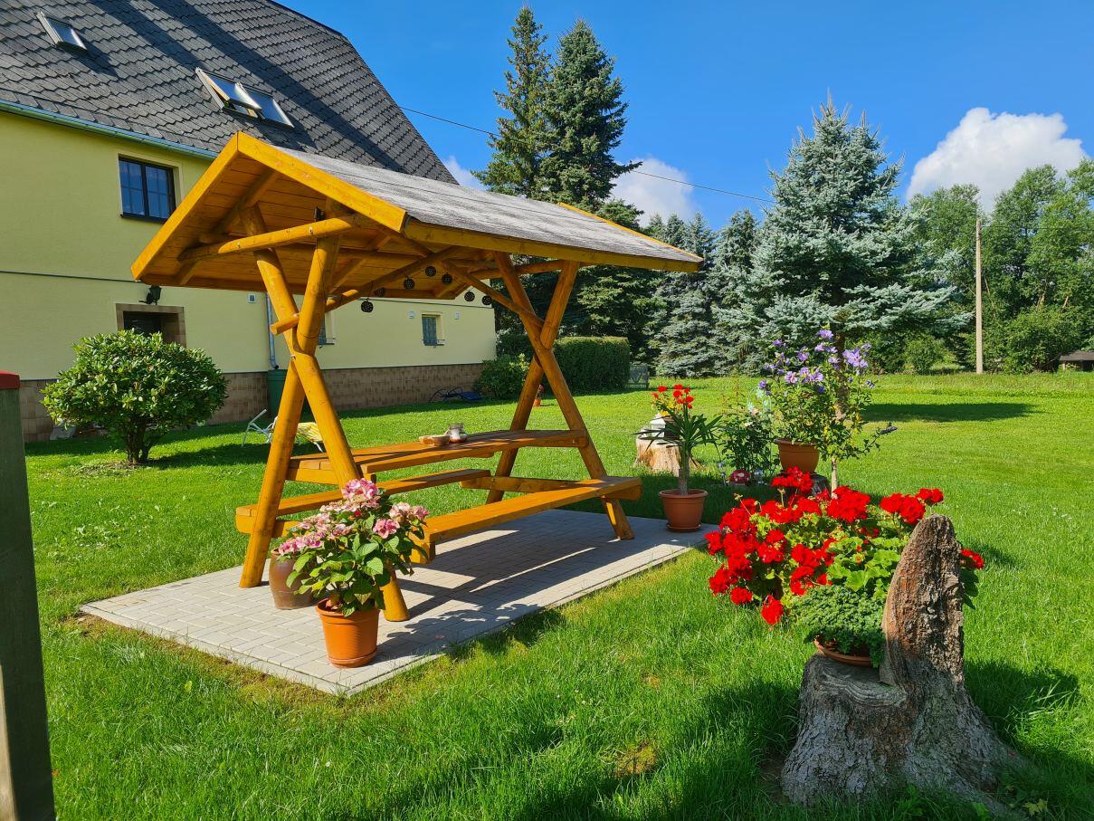 Ein separater Eingang mit Terrasse sowie ein Garten mit Gartenmöbel ist selbstverständlich. Schöne alte Bäume vor der Terrasse laden zum Verweilen ein. Für Ihre Kinder steht ein Spielplatz zur Verfügung. Sie sind bei uns auch mit Ihren eigenen kleinen Haustieren ein willkommener Urlaubsgast. An kalten Wintertagen sorgt zusätzlich der gemütliche Kachelofen für behagliche Wärme. Unsere schöne Erzgebirgsregion bietet im Sommer wie im Winter vielfältige und abwechslungsreiche Ausflugsmöglichkeiten, so zum Beispiel das Klein-Erzgebirge in Oederan Stadt Freiberg mit ihrer historischen Innenstadt und dem bekannten Dom,Augustusburg mit Schloß und Museen, Falknerhof, Sommerrodelbahn, im Winter Ski- und Schlittenverleih, Liftbetrieb Seiffen mit den erzgebirgischen Handarbeiten u.v.m.,Sachsens wärmstes Thermalbad ca. 25km entfernt Das nächste Freibad befindet sich nur 3 km von der Ferienwohnung entfernt.