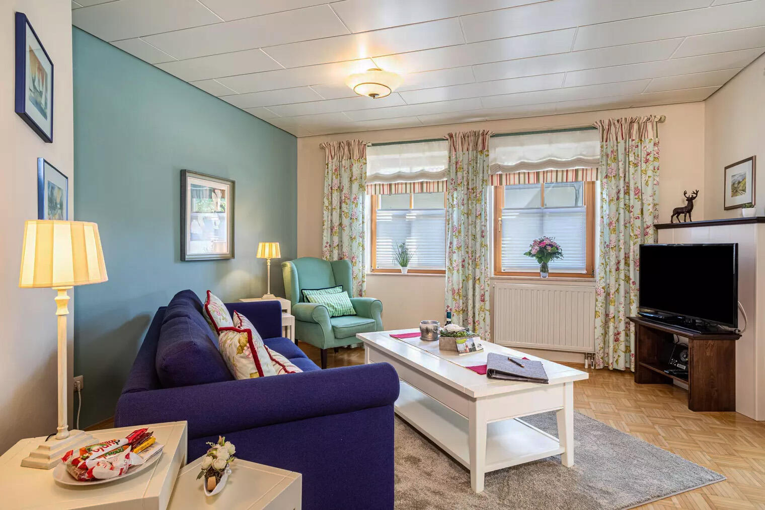 Alle 8 Wohnungen haben eine Einbauküche, ein Badezimmer mit Dusche/WC, zwei getrennte Schlafräume, Farb-TV, WLAN, Radio und Telefon. Wenn Sie mit mehr Personen anreisen, schlagen wir auch gern Kinder- oder Zustellbetten auf.