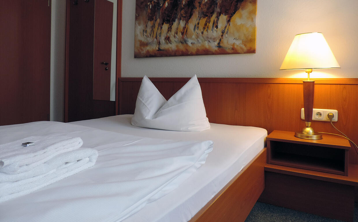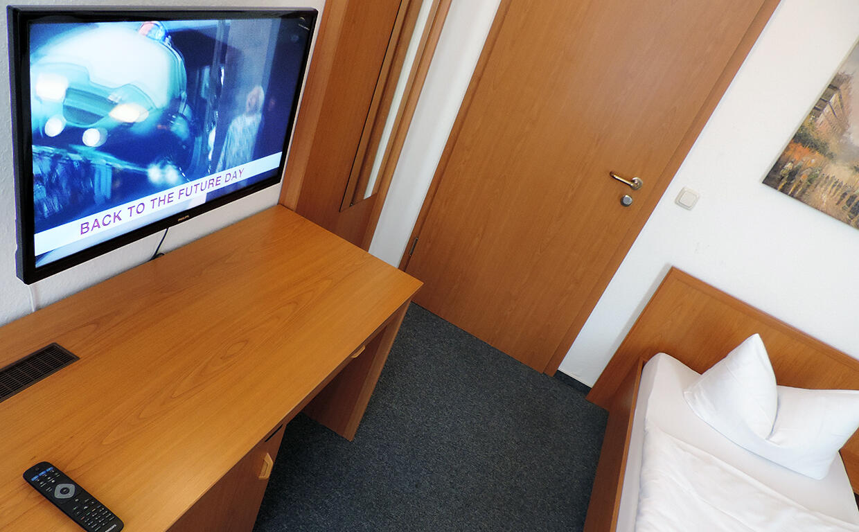 In unseren elegant eingerichteten Einzelzimmern erleben sowohl Geschäftsreisende als auch Kurzurlauber Harmonie und Wohnkomfort pur. Neben unserem kostenlosen W-LAN Zugang gehört ebenfalls ein LED Flachbildfernseher mit digitalem Kabelempfang zur Standardausstattung. Des Weiteren steht Ihnen eine kostenlose Wasserflasche in Ihrer Minibar zur Verfügung.