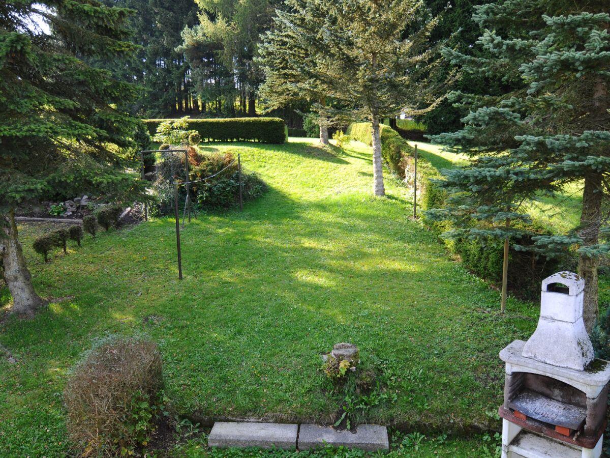 Am Haus befindet sich ein großzügiges Gartengrundstück mit einem Grillplatz und Sitzgelegenheiten. Durch die Hanglage des Grundstückes, haben Sie vom oberen Bereich des Gartens eine fantastische Aussicht über Stützerbach.