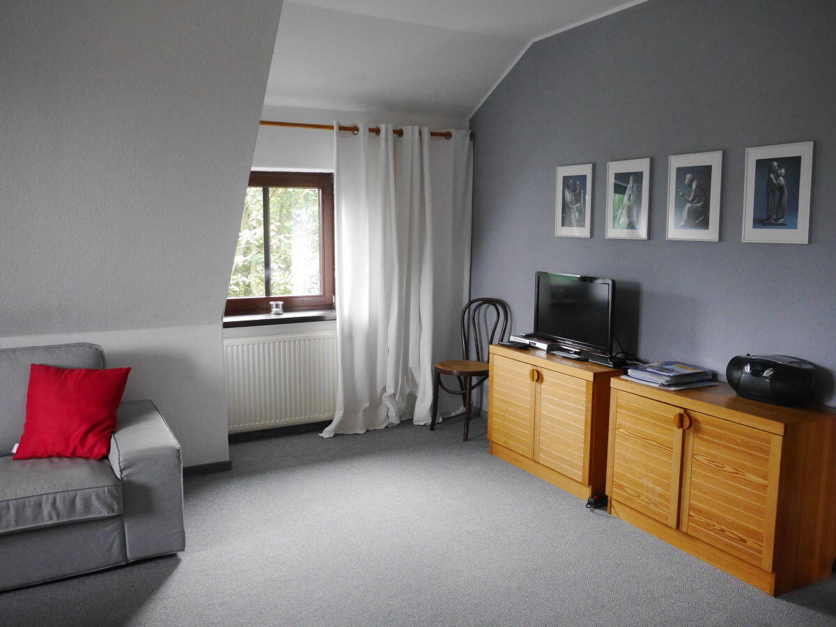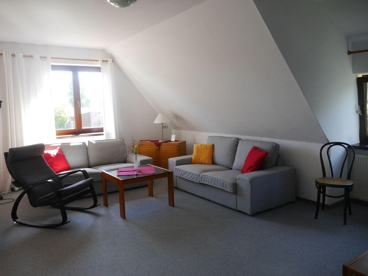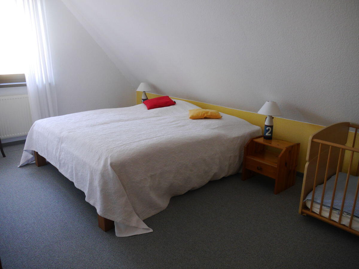 Ein großer und idyllischer Garten mit Liegewiese lädt zum Sonnen, Spielen und Grillen ein. Die gemütliche und gut ausgestattete Wohnung für 2-4 (+Kinderbett) Personen befindet sich im Obergeschoss eines Einfamilienhauses im Friesenstil. Die Ferienwohnung besteht aus einem Wohnraum mit Sitzgarnitur für 6 Personen. Ein Elternschlafzimmer mit Doppelbett und einem Kinderbett (1,40m). Im Kinderzimmer stehen zwei zwei separate Bettenzur Verfügung Die vollausgestattete Küche mit Geschirrspüler, Backofen, Mikrowelle und Kaffeemaschine ist mit einer gemütlichen Essecke für vier bis fünf Personen versehen. Ein Hochstuhl kann gestellt werden.