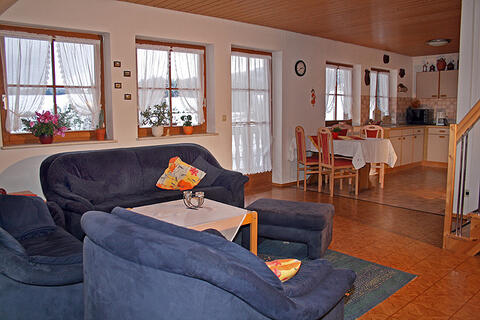 Unsere Ferienwohnung A bietet bei 82 Quadratmetern Platz für bis zu 7 Personen. Sie verfügt über zwei separate Schlafräume (1 x mit Doppelbett 1 x mit Doppelstockbett und einem normalen Bett). Ein großes gemütliches Wohnzimmer, mit SAT TV, Video und Radio, bietet zwei weitere Schlafmöglichkeiten. Eine voll ausgestattete Küche mit Mikrowelle, Bad/WC, und ein schöner großer Balkon mit Gartenmöbeln komplettieren die Ferienwohnung. Unsere Ferienwohnungen sind mit 3 Sternen bewertet und als familienfreundlich ausgezeichnet. Die Ferienwohnung B ist mit zwei getrennten Schlafräumen eingerichtet. Der Wohnraum bietet mit SAT TV und Radio den von Ihnen gewünschten Komfort. Angegliedert ist eine voll eingerichteten große Wohnküche mit Mikrowelle. Ein Bad mit WC und ein Flur mit Garderobe vervollständigen die Ausstattung der Ferienwohnung. Unsere Ferienwohnungen sind mit 3 Sternen bewertet und als familienfreundlich ausgezeichnet. Möchten Sie an warmen Sommertagen das Essen im Freien geniessen? Die Ferienwohnung verfügt über einen schönen großen Balkon mit Gartenmöbeln.