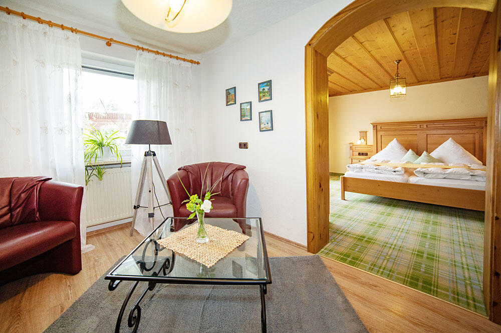Komfortable Zimmer im Landhotel Bayerischer Wald Es stehen Ihnen 20 Komfort-Hotelzimmer (EZ, DZ, Dreibett-Zimmer) mit Balkon/Terasse oder Wohnteil, SAT-TV, Radio, Telefon, Minibar, Dusche/WC zur Verfügung.