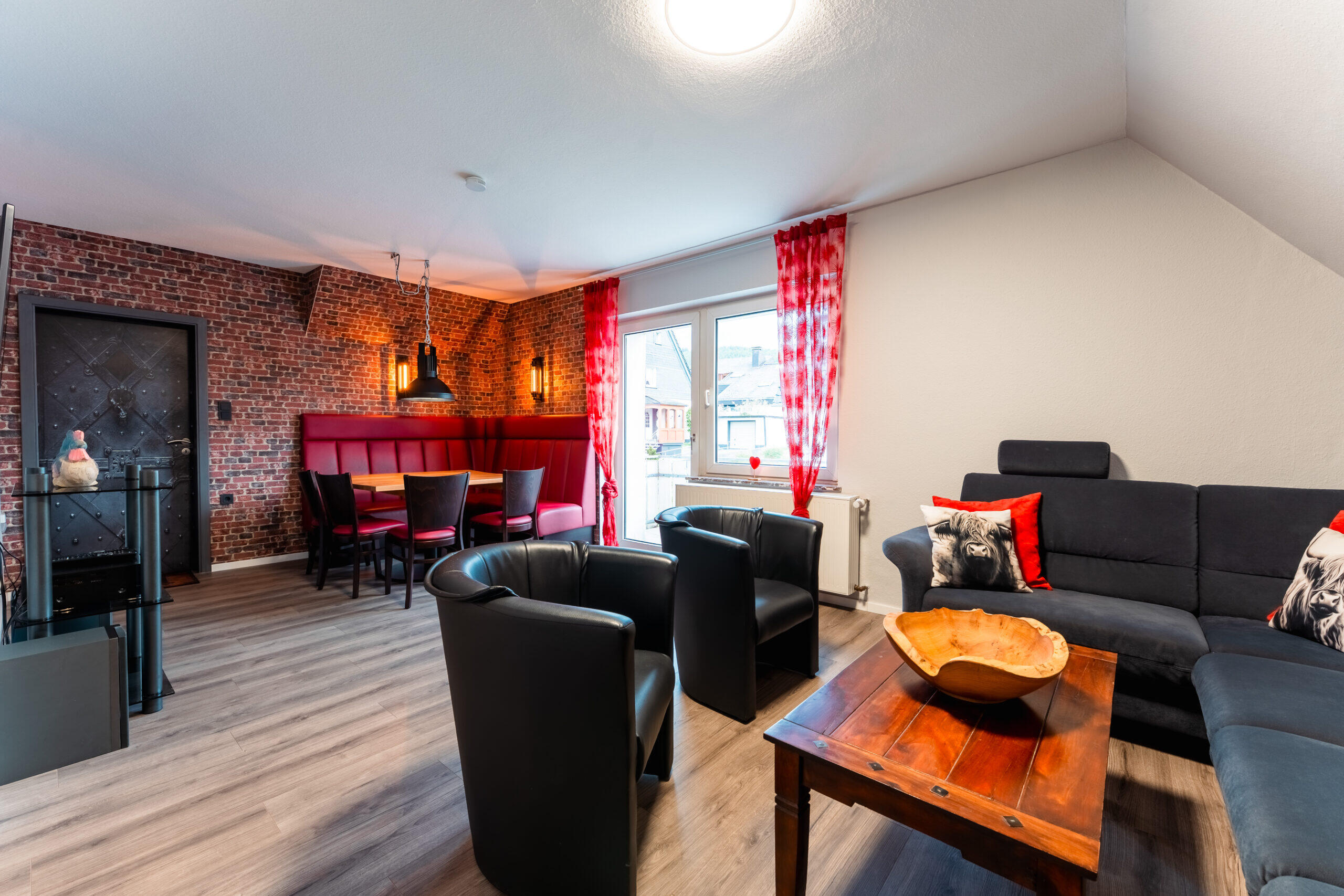 Die Ferienwohnung Loftstil Panorama liegt im 1. OG in einem ruhigen Wohngebiet in Bödefeld. Mit rund 100 m² Wohnfläche bietet sie ausreichend Platz für große Familien oder zwei befreundete Familien.