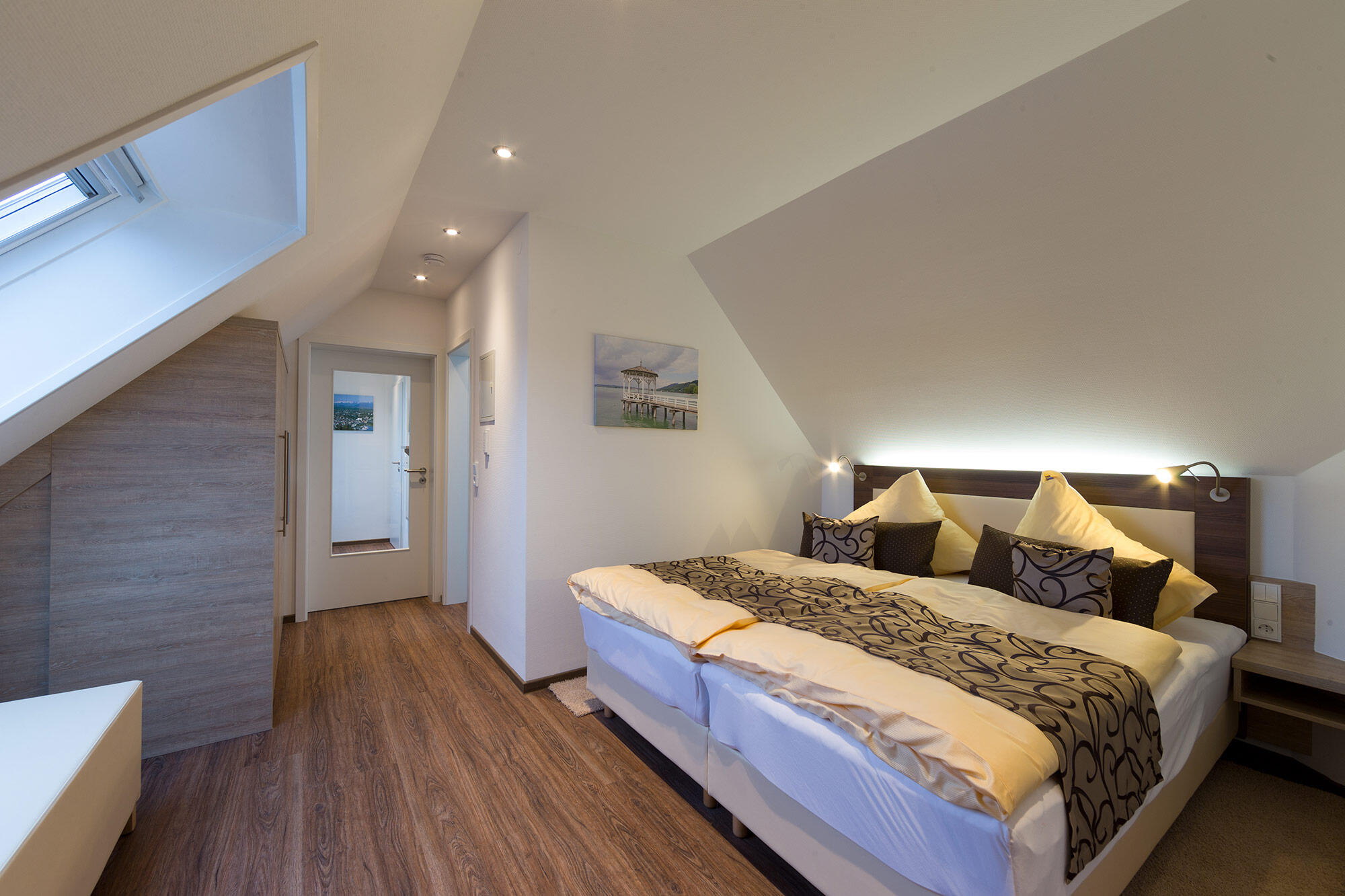 Unsere Ferienappartements erreichen Sie über zwei getrennte Treppenhäuser. Über das vordere Treppenhaus am Haupteingang erreichen Sie unsere zehn exklusiven 5 Sterne Luxusappartements mit herrlichem Seeblick. Über das hintere Treppenhaus gelangen Sie in die sechs komfortablen und gemütlich eingerichteten 3 Sterne Ferienappartements mit Blick zum See.