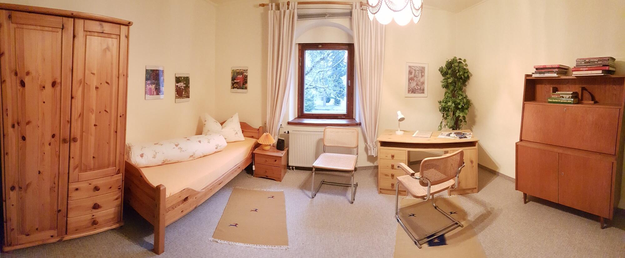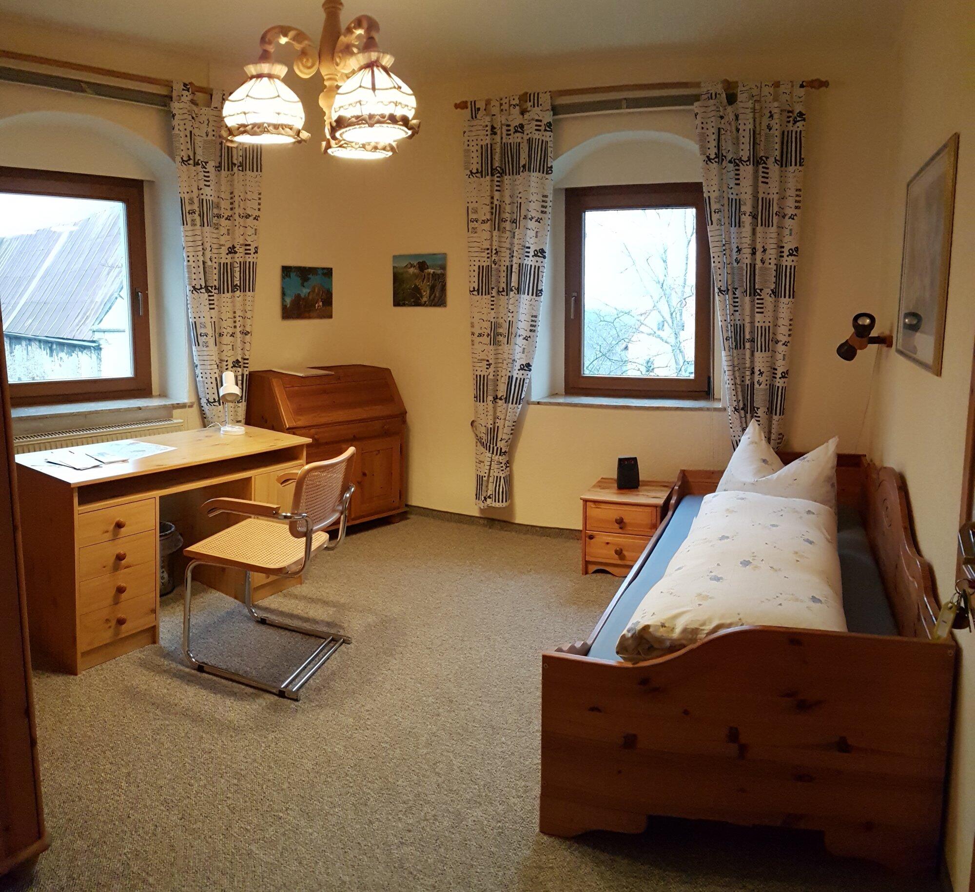 Einzelzimmer Unsere zwei Einzelzimmer sind jeweils in der 1. Etage, ausgestattet mit Dusche/WC. Massivholzmöbel prägen die Zimmer im gemütlichen Landhausstil. Doppelzimmer Unsere zwei Doppelzimmer sind jeweils in der 1. Etage, ausgestattet mit Dusche/WC. Massivholzmöbel prägen die Zimmer im gemütlichen Landhausstil.