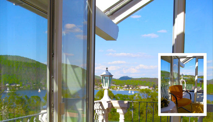 Entspannen Sie sich im stilvollem Ambiente am größten Stausee Europas Genießen Sie aus Ihrer Ferienwohnung diesen wunderschönen Panoramablick ganzjährig Sport: Segeln, Surfen, Tauchen, Reiten, Angel, Golf spielen (18-Loch Anlage in Waldeck), Tennis spielen (2 Plätze), Wasserski und Sportfischen, Rundflüge und Kurse in der Flugschule u.v.m.