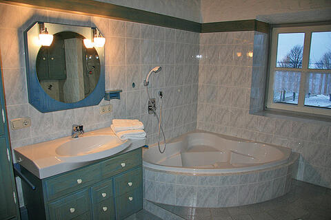 Alle Doppelbetten in Wohnung 1 (Sonnenblume) und Wohnung 2 (Wegwarte) können zu Einzelbetten getrennt werden. Die Badezimmer und die Toiletten befinden sich jeweils in der Wohnung.