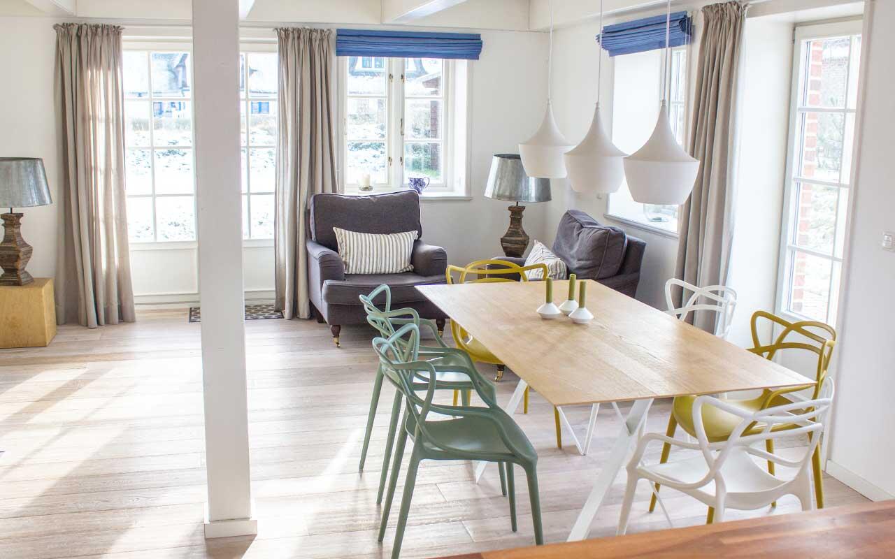 Die Ferienhäuser: Söderjaat 1 Für 2 bis 4 Personen Das alte Käpitänshaus wurde 2012 komplett saniert und mit Liebe hergerichtet. Söderjaat 1a Für 4 bis 6 Personen Im Sommer 2012 bezogen die ersten Gäste die neu gebauten und hochwertig ausgestatteten Reetdachhaushälften. Beide Wohneinheiten haben einen Lichteinfall von 3 Seiten und daher Einzelhauscharakter. Söderjaat 1b Für 4 bis 6 Personen Im Sommer 2012 bezogen die ersten Gäste die neu gebauten und hochwertig ausgestatteten Reetdachhaushälften. Beide Wohneinheiten haben einen Lichteinfall von 3 Seiten und daher Einzelhauscharakter.