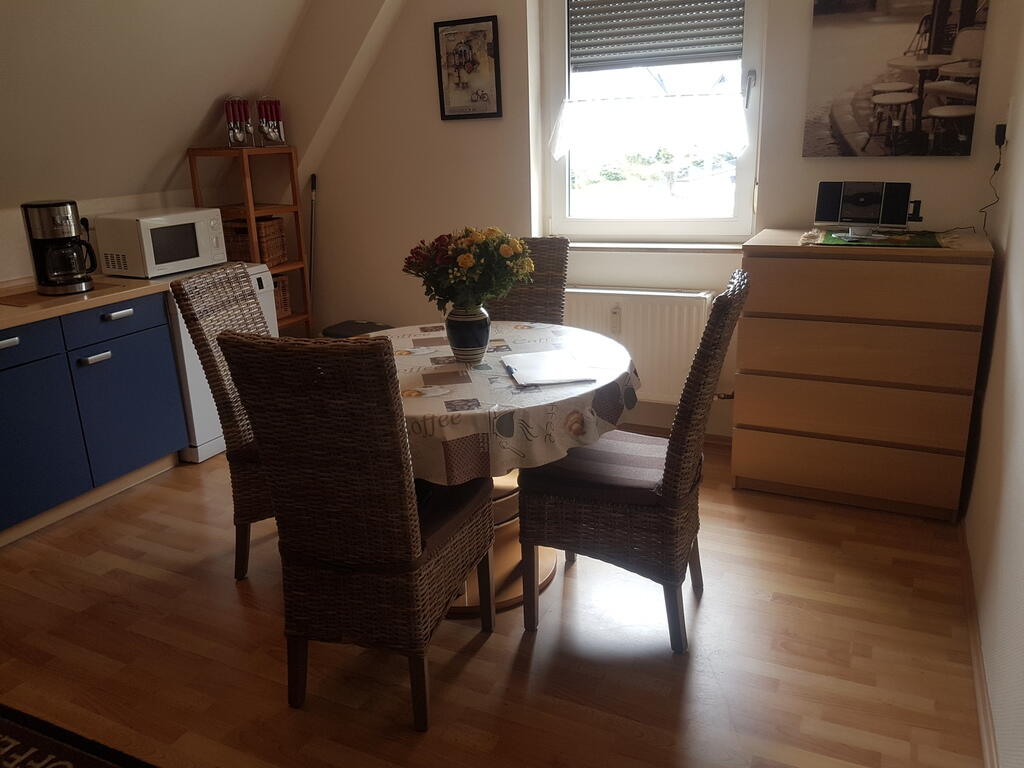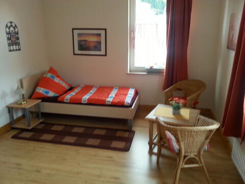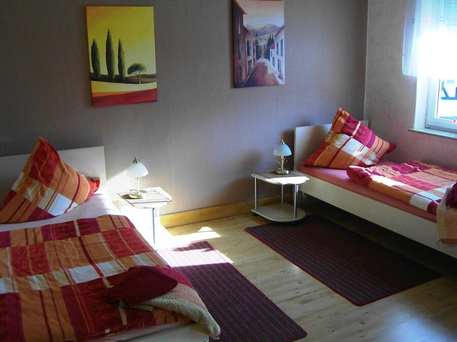 Die Wohnung befindet sich im ersten Stock des Hauses und verfügt neben Küche, Wohnzimmer, Bad/WC Gästetoilette und Balkon über drei Zweibettzimmer und einem Einzelzimmer. Das Wohnzimmer mit SAT-TV hat ein großes Panoramafenster mit Blick auf unserer große Liegewiese. Internet über W-Lan möglich!