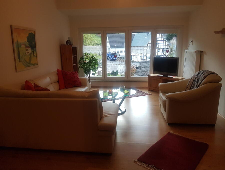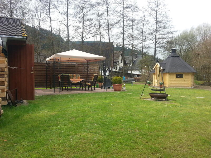 Unsere Region zählt zu den schönsten Wanderregionen Deutschlands. Die beiden großen Wohnungen bieten Platz für insgesamt 14/15 Personen. Garten und Grillecke warten auf Ihren Besuch! Neu im Kuckucksnest ist das finnische Kota! Hier kann man auch bei schlechtem Wetter in gemütlicher Runde grillen! Wer die Natur pur erleben möchte ist bei uns genau Richtig. In einem malerischen Tal gelegen, befindet sich der Ort Heinsberg und unser Kuckucksnest. Heinsberg ist ein Grenzort, 420 bis 450 m über N.N. und liegt am Fuße des Rothaarhauptkammes, im Südosten des Kreises Olpe. Am 13.Februar 1345 erstmals urkundlich als „Hymersberch" erwähnt, zählt das Dorf heute noch 943 Einwohner und ist seit dem Jahre 1969 ein Ortsteil der Gemeinde Kirchhundem. Die Wohnung befindet sich in der oberen Etage des Hauses und hat einen tollen Blick auf den Ort Heinsberg. Neben einer voll ausgestatteten Küche verfügt die Wohnung über ein Wohnzimmer mit Sat TV, ein Esszimmer, Bad/Dusche/WC u. separatem Waschraum, sowie drei Zweibettzimmer und einem Einzelzimmer. Der dazugehörige Balkon liegt eine Etage tiefer und lädt ein den Sonnenuntergang zu beobachten. Internet über W-Lan möglich!
