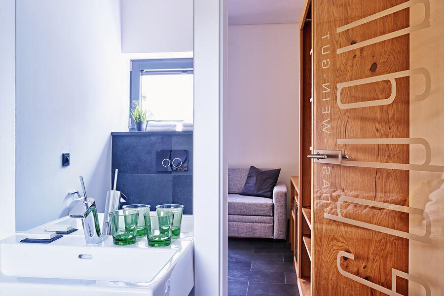Unsere Gästezimmer: Ausgangspunkt für Genusstouren Hier finden Sie Raum zum Innehalten und genießen: Sei es eine persönlich geführte Weinverkostung, ein Spaziergang über die Weinberge, eine Wanderung durch unberührte Naturlandschaften oder kulinarische und kulturelle Spezialitäten. Fühlen Sie sich bei uns gut aufgehoben. Unsere zwei Gästezimmer sind einladend komponiert und mit modernster Technik (Flachbildfernseher, kostenloses WLAN, Safe - auch für breite Laptops etc., Schließsystem, Stromhauptschalter für von Elektrosmog geplagte ...) ausgestattet. Die Zimmer haben eine eigene Eingangstüre, sodass man beim "Nach Hause Kommen" niemanden stört. Am Morgen wird man - wenn man es will - von der direkt über der ungarischen Tiefebene aufgehenden Sonne geweckt und es erwartet Sie nach einer ruhigen, erholsamen Nacht ein reichhaltiges Frühstück mit regionalen und saisonalen Köstlichkeiten. Den Zeitpunkt dafür vereinbaren Sie einfach mit uns. Für Frühaufsteher, die eventuell den Sonnenaufgang bewundern wollen, gibt es eine Nespressso-Maschine in jedem Zimmer. Zusätzlich befindet sich in jedem Zimmer ein immer gut gefüllter Weinkühlschrank, sodass Sie gemütlich am Nachmittag oder in lauen Nächten auf unserem Stammtisch noch "nachverkosten" können.