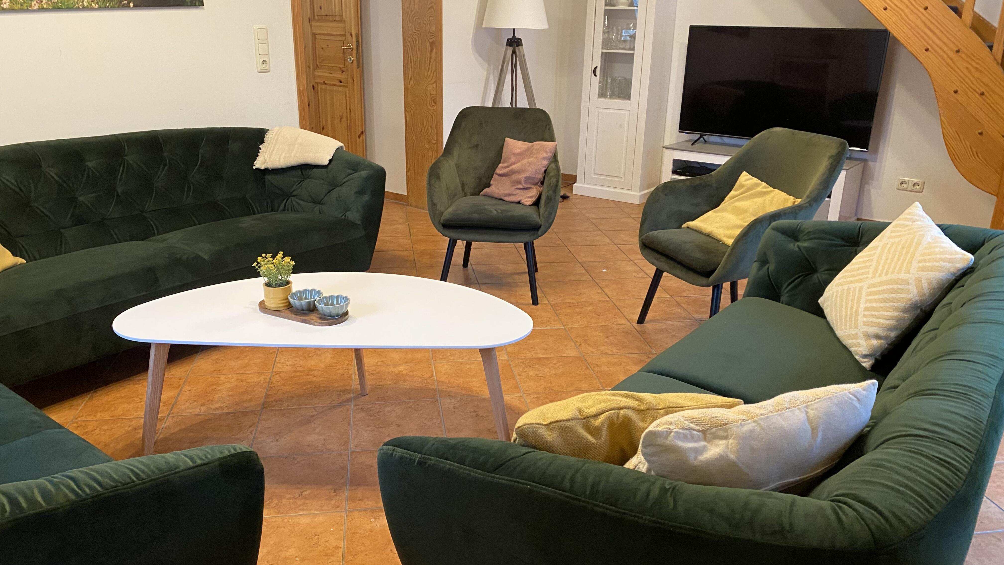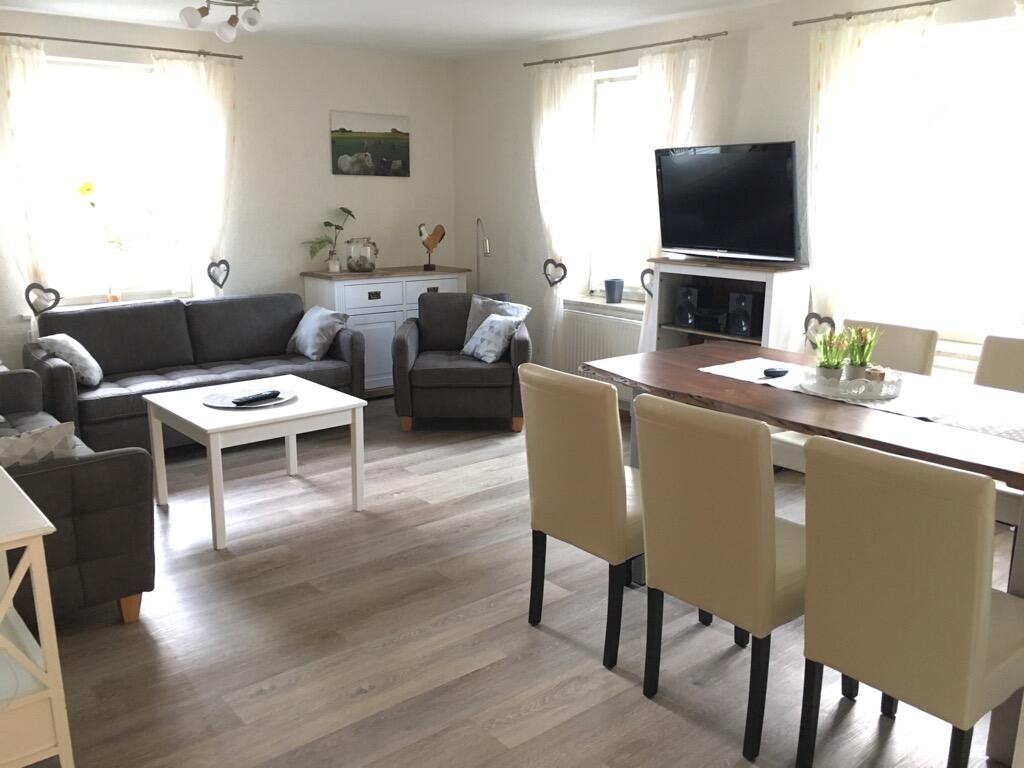 Jede Wohnung verfügt über einen separaten Eingang und alle Objekte haben schöne Terrassen mit Gartenmöbeln und Grill Alle Wohnbereiche haben gemütliche Sitzgruppen und TV. Küchen: Geschirrspüler, Mikrowelle, Wasserkocher, Toaster, Kaffeemaschine, Handmixer .Großzügige Essbereiche laden zum gemeinsamen Essen ein. Tow. 2 Bäder pro Einheit, Fußbodenerwärmung. Für die "Kleinen" gibt es Kinderbett, Hochstuhl, Wickelkommode Treppengitter . In einem separaten Raum steht eine Gästewaschmaschine. Wer einmal besonders schwitzen möchte, besucht unsere Sauna. Eine Wohnung für 6 Personen und das Ferienhaus sind behindertenfreundlich gestaltet. WLAN kostenlos.