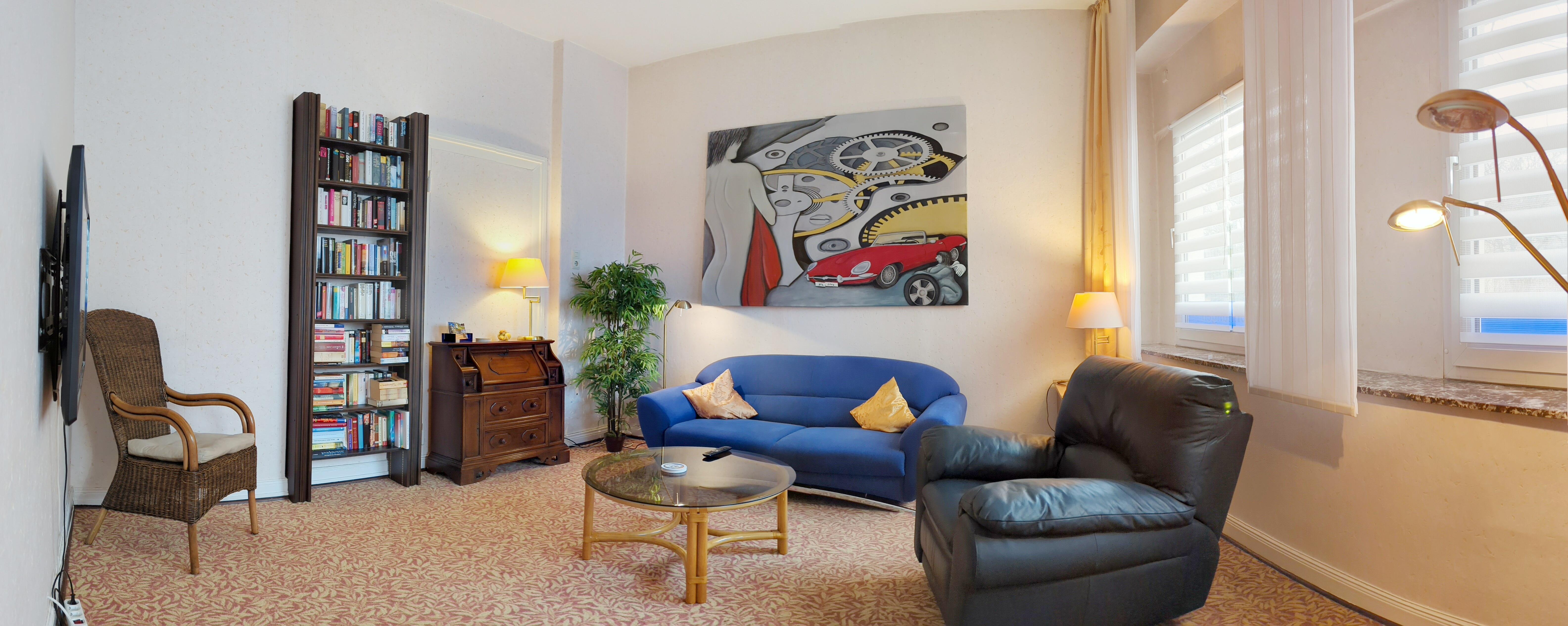 Unser Wohnung "Galerie" im 2.OG mit Loggia ist ca. 55 qm groß und für max. 2 Personen und einem Zweibett-Schlafzimmer ausgestattet.