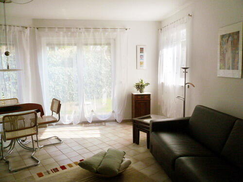 Sie wohnen im Erdgeschoss unseres Einfamilienhauses im Südwesten Berlins. Das 43 qm große Nichtraucher-Apartment liegt ebenerdig, ist ohne Stufen zu erreichen und hat einen separaten Eingang. Es bietet Platz für 3 Personen.
