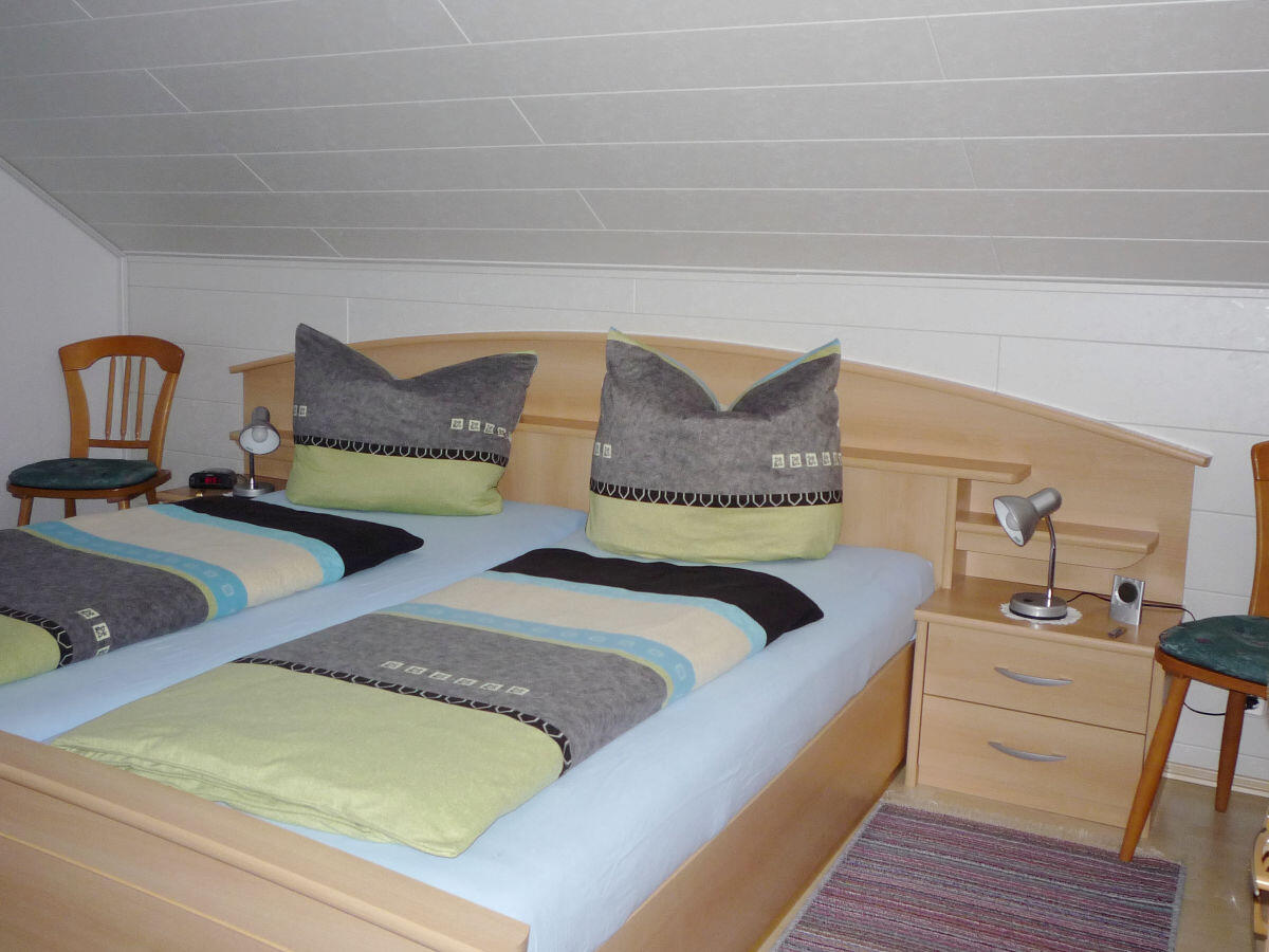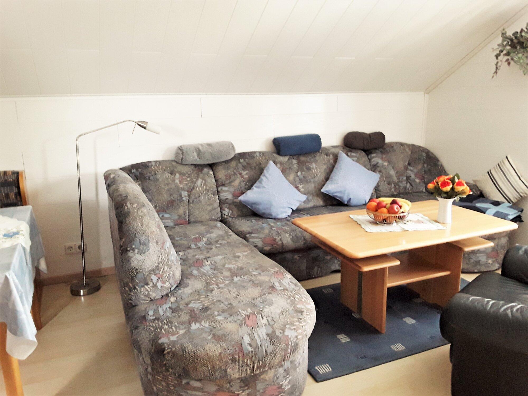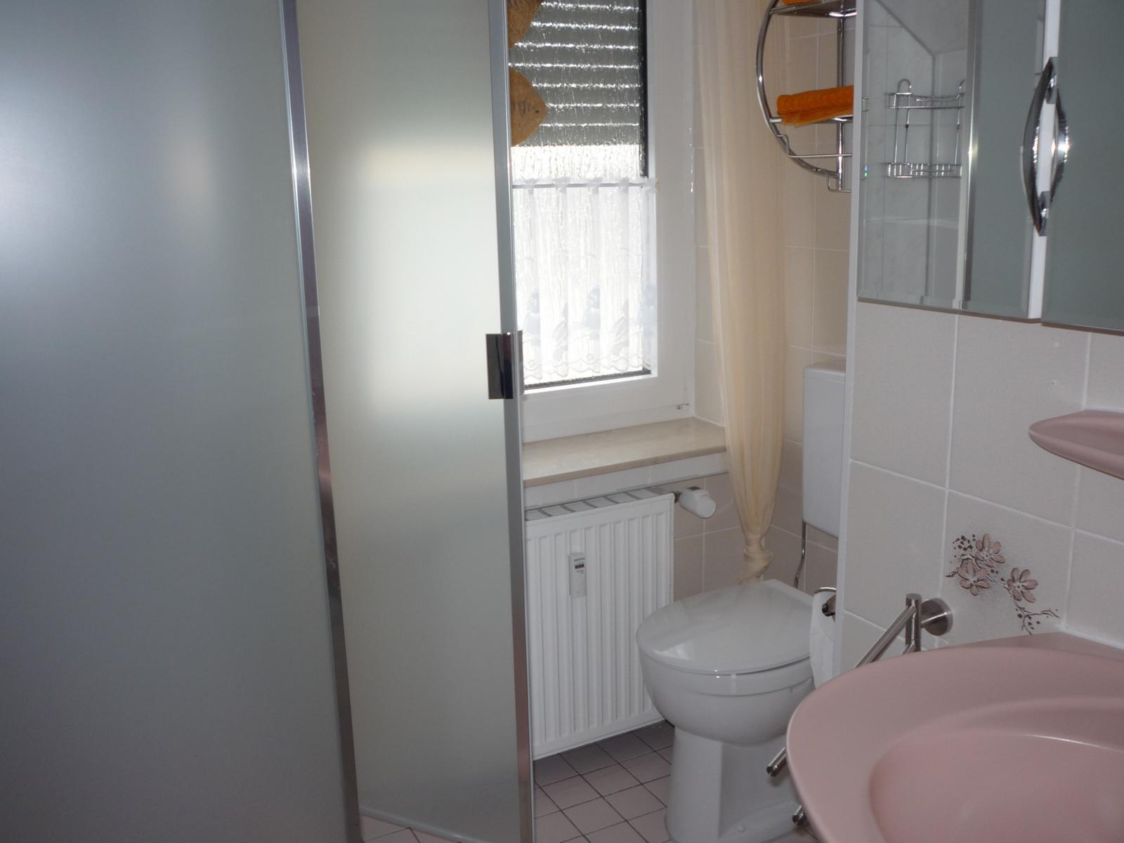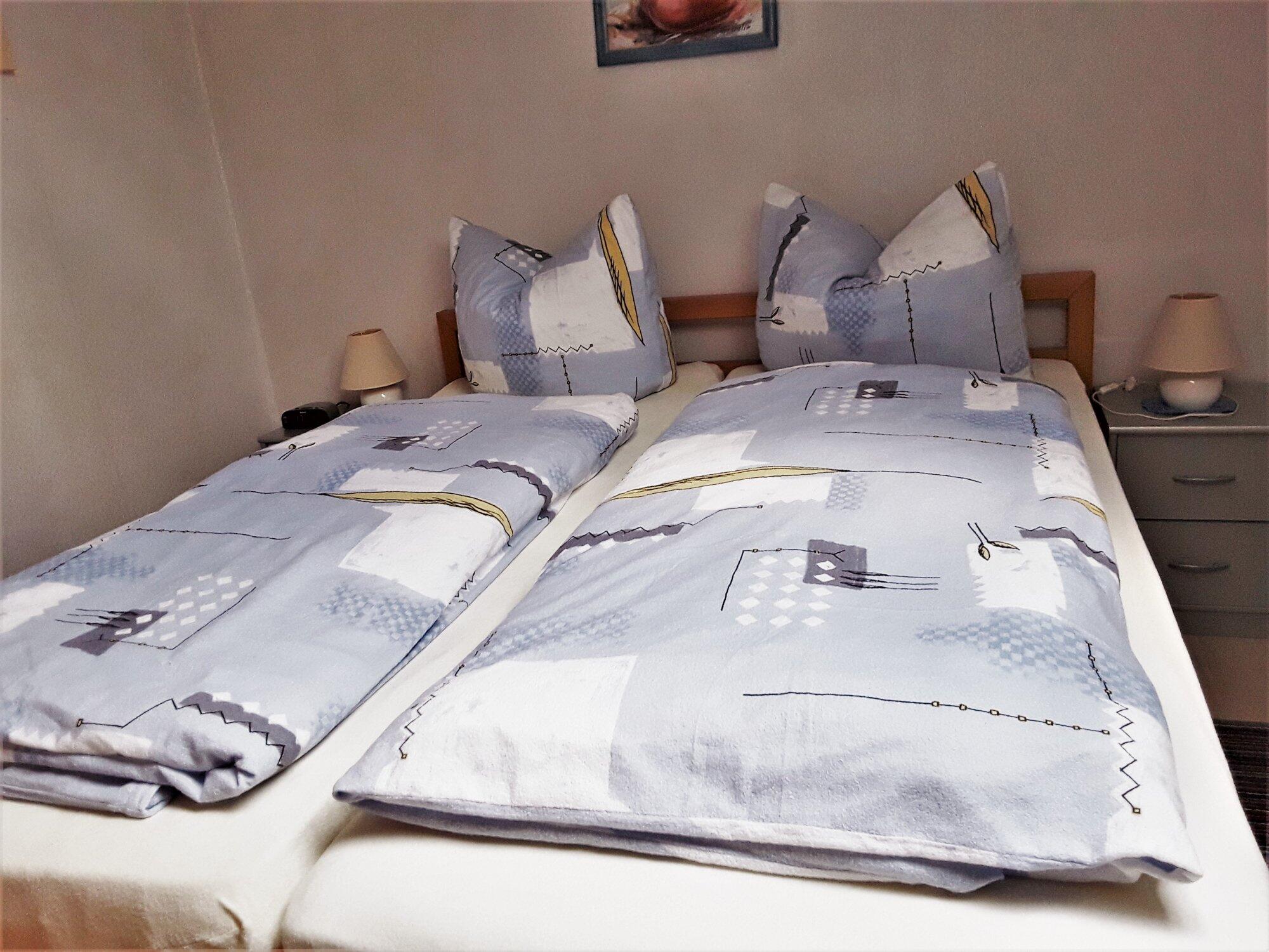 Die Ferienwohnung besteht aus zwei Schlafzimmer mit jeweils einem Doppelbett, ein Wohn- Esszimmer mit einem ca 12m² Balkon, (überdacht mit einer ausfahrbahren Markise), SAT-TV, DVD Player, CD-Radio und Wlan Internet Zugang und Schlafcouch, einer komplett eingerichteten Küche mit allen erdenklichen E-Geräten wie Herd mit Backofen und 4 Platten Ceranfeld, Abzugshaube mit Abluft, Kühlschrank, Spülmaschine, Mikro-Welle, Kaffeemaschine, Toaster, Wasserkocher, Eierkocher, Mixer, Entsafter usw, und einem Bad mit Dusche und fester Duschabtrennung und WC. Natürlich ist in dem Bad auch ein Spiegelschrank mit drei beweglichen Türen, ein Kosmetik Spiegel wie auch ein Föhn. Ein Bügeleisen mit Bügelbrett steht Ihnen in dieser Ferienwohnung zur Verfügung. Hinter dem Haus der 2 Ferienwohnungen steht für unsere Gäste eine große überdachte Terrasse zum geselligen Beisammen sein oder Grillen usw zu Ihrer Verfügung.