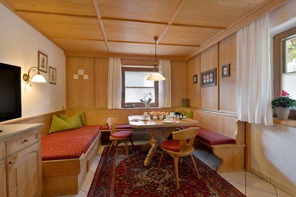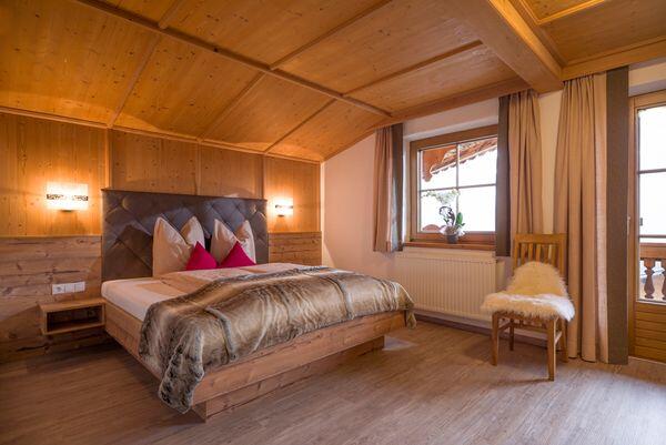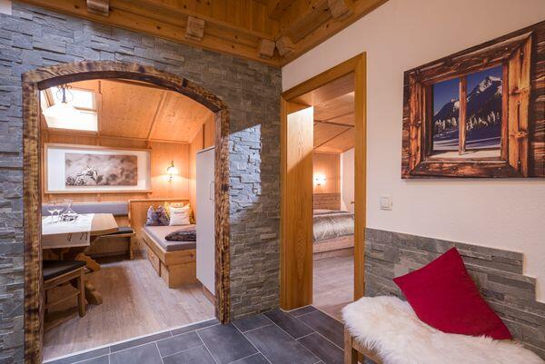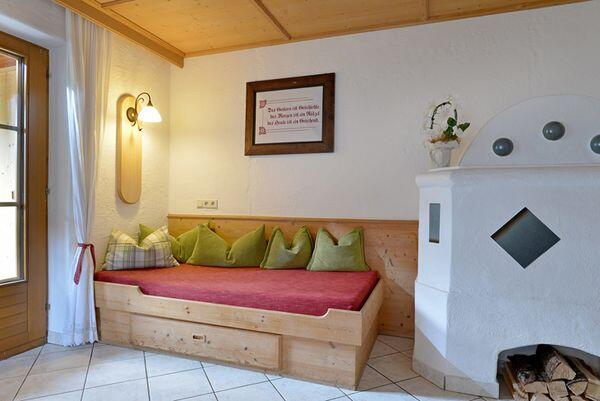Das Appartement Abendrot liegt ebenerdig, an der Südostseite des Hauses. Wenn Sie am Abend unter einer Weinlaube vor der Wohnung sitzen und gegen die Dreitausender Gipfel der Zillertaler Alpen blicken, sehen Sie ein unvergessliches Abendrot, entweder weil dieses tatsächlich zu sehen ist, oder weil Sie vielleicht in der verführerischen Stimmung ein Gläschen zu viel getrunken haben. Wenn das auch noch unser Schnaps war, dann könnte aus dem Rot auch ein leichtes Blau werden. Nicht nur für so manchen lieben Vierbeiner wurde diese kleine Oase eine zweite Heimat, nein, viele unserer treuen Zweibeiner freuen sich jedes Jahr auf ein erfrischendes Frühstück und eine abendliche Speckjause vor der Wohnung unter der Weinlaube. Es ist ein eigenes Flair dort und viele lassen sich auch ein aromatisches Grillen nicht entgehen. Während die einen die Sonne oft schon im Februar auf einer Liege genießen, spielen die anderen daneben, in einer kleinen Halle, fanatisch Tischtennis, bei jeder Witterung. Die Schlafzimmer, ein Zweibettzimmer und ein Dreibettzimmer, sind kreativ gestaltet. Die Dusche ist vom WC getrennt, denn, so gerne man sich natürlich mag, es gibt Sachen die man lieber alleine erledigt. Der Kern des Apartments ist ein großes, gemütliches Wohnzimmer mit Kochecke und Kachelofen. Der Raum bietet genügend Platz, sich darum zu prügeln, wer denn nun kochen darf. Der Verlierer darf sich auf einer der zwei eingebauten Liegen ausruhen oder auch den Kachelofen aufheizen und wenn er schließlich ins Schwitzen gerät, sollte er sich im TV nicht unbedingt die Erotikprogramme ansehen. Das Apartment Morgenrot liegt im ersten Stock des Hauses. Das Apartment wurde total neu gestylt, geplant und ausgeführt nach den Urbedürfnissen des Menschen. In allen Belangen eine gelungene, moderne "Lustgrotte". Die Küche positioniert, wie schon in der Steinzeit, im Zentrum, allerdings mit allem Komfort. Die Stube eingebaut in eine sichere Nische mit gemauertem Eingang. Die beiden Schlafzimmer sind behaglich, mystisch, ergreifend und vor allem erotisch. Teste deine Sinne, Wohlfühlen ist genetisch angeboren. Ein breiter, massiver Holzbalkon führt Sie direkt zum Sonnenaufgang. Lassen Sie sich generell vom Holz berühren und inspirieren. Holz lebt und vermittelt Emotionen. In den Sommermonaten werden Sie schon sehr früh von den ersten Sonnenstrahlen wachgeküsst. Wenn Sie dann auch tatsächlich aufstehen, beginnt Ihr Abenteuer. Oder, Sie werden sonst wachgeküsst, bleiben liegen und das Abenteuer beginnt auch :) Wenn Sie duschen wollen, werfen Sie ihren rücksichtsvollen Mitbewohner, der die Sportzeitung unbedingt auf dem WC lesen muss, einfach raus. Er kann ein separates WC daneben benutzen. Sollten Sie es tatsächlich schaffen, Ihren Partner freiwillig aus dieser Küche zu bekommen - nur 5 Gehminuten entfernt befindet sich ein gutes Hotel zum Essen. Ja, und wenn im Herbst der Platzhirsch vom Gatter nebenan zu röhren beginnt, machen Sie einfach mit, das stört hier niemanden und belebt die Sinne. Sollten Sie sich allerdings auch suhlen, vergessen Sie sich nicht zu waschen :)