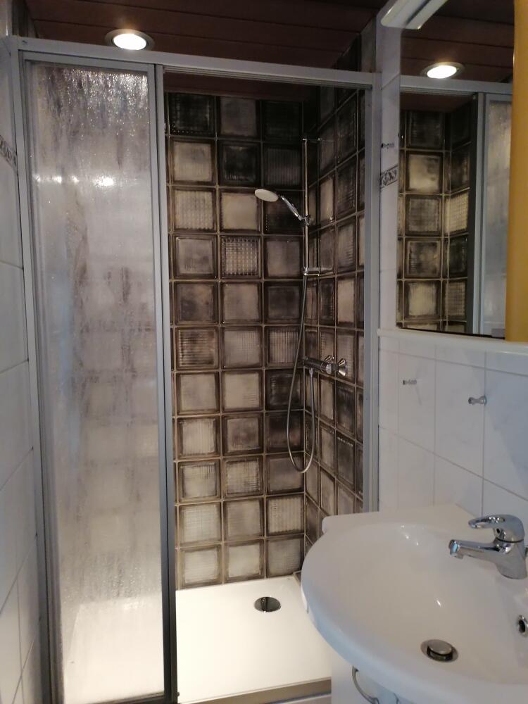1 Duschbad/ WC mit ebenerdiger Dusche und Föhn, Waschtisch