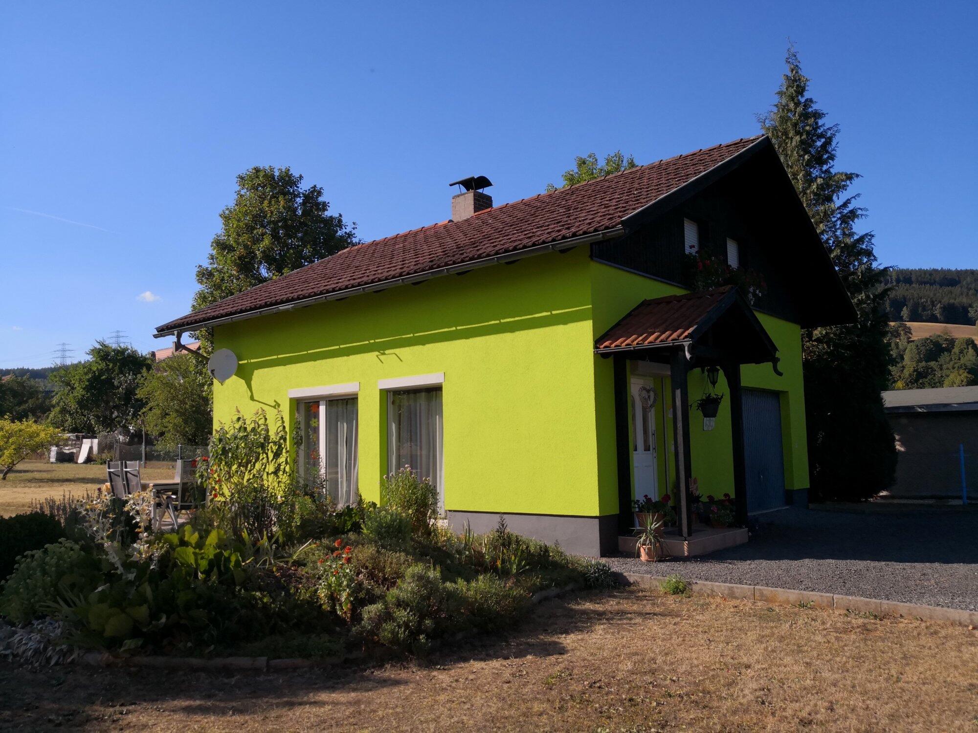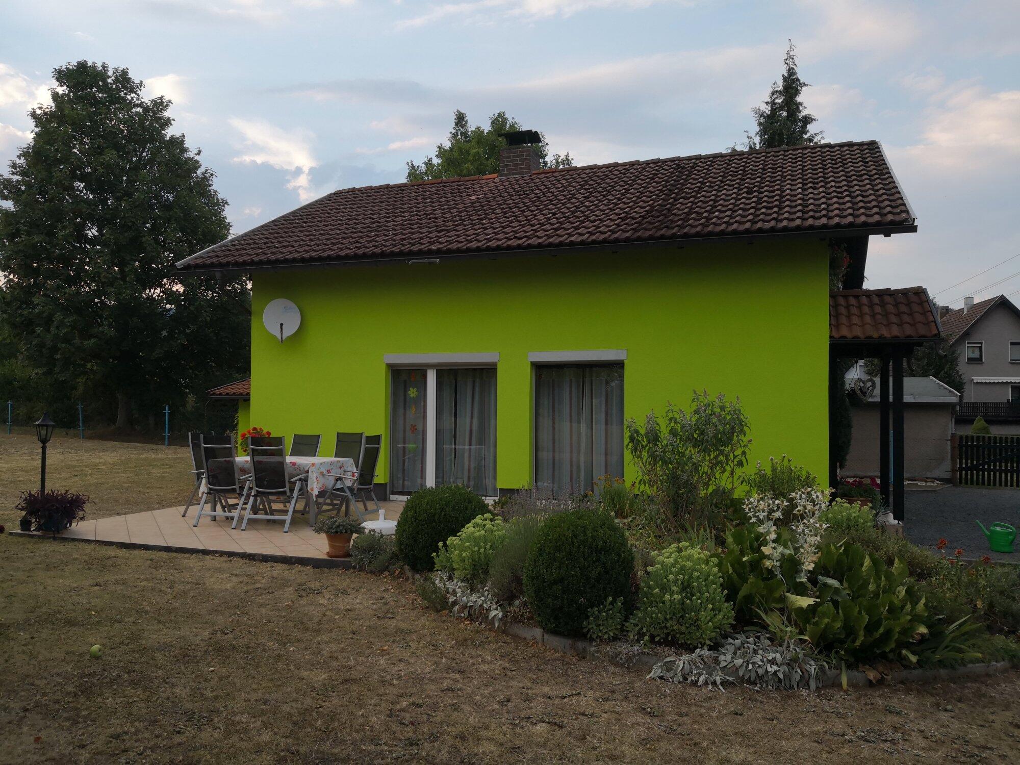Das Ferienhaus (ca 65m2 ) befindet sich auf dem Gartengrundstück des Vermieters und ist ausgestattet mit: