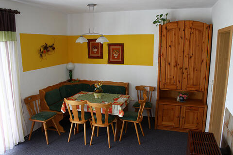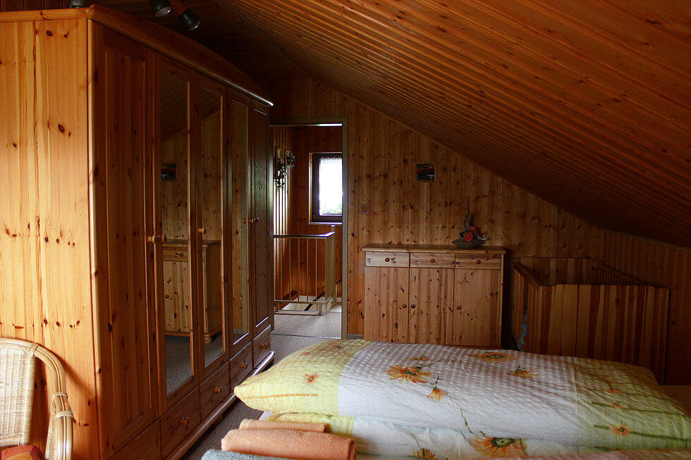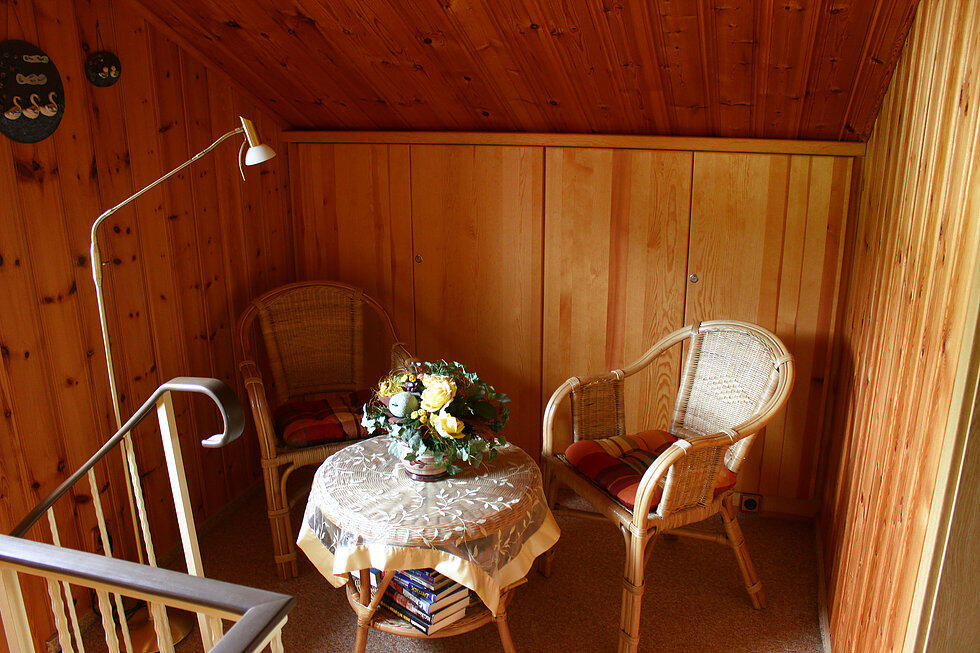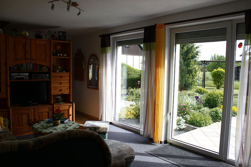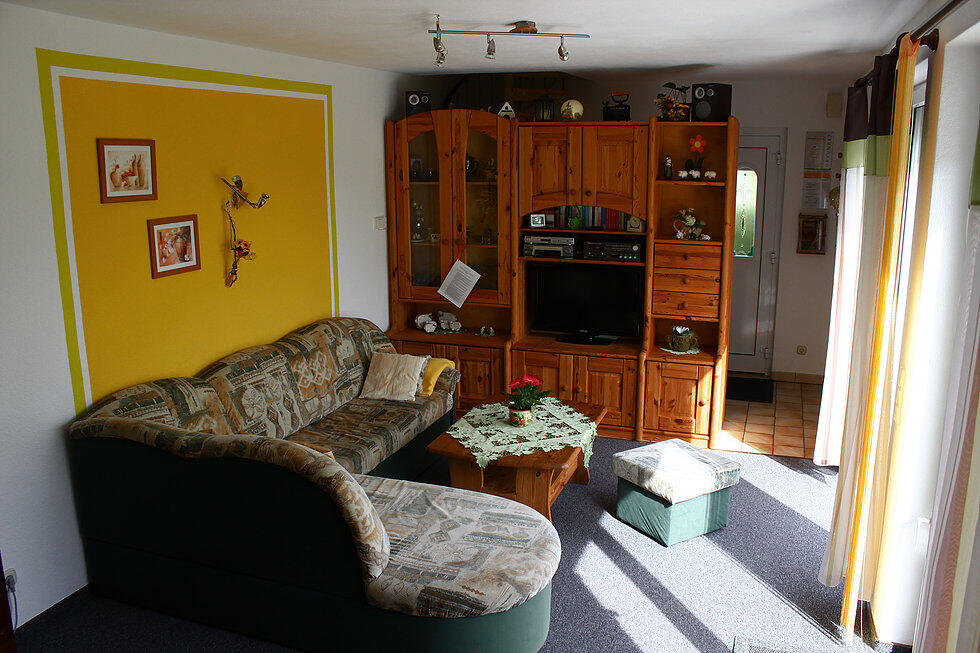 Im Erdgeschoss: 1 Wohnzimmer mit Couchgarnitur, Farb- TV, (Sat.- Anlage), Radio, Schrankwand und Essecke für 6 Personen, die Küche mit Kühlschrank, E- Herd, Geschirrspüler, Kaffeemaschine, Spüle und Geschirr, das Bad mit Dusche, WC und Waschgelegenheit (warm/ kalt Wasser). Im Dachausbau: 3 Schlafzimmer mit je einem Doppelbett und Kleiderschrank, zusätzlich 1 Kinderbett und 1 Kinderstuhl. Im Garten stehen den Gästen 1 Terrasse, Gartenmöbel und Grillmöglichkeit zur Verfügung.