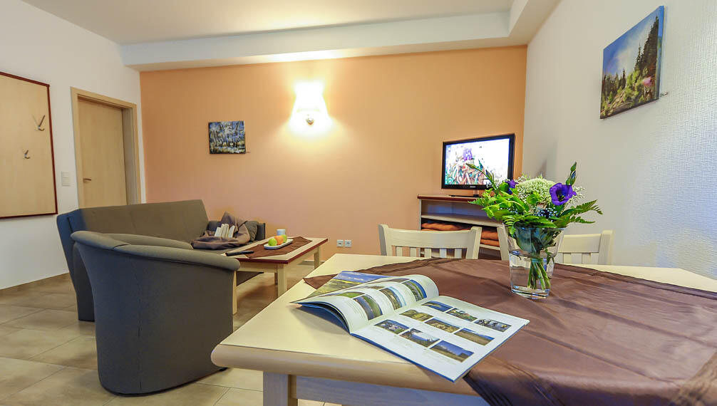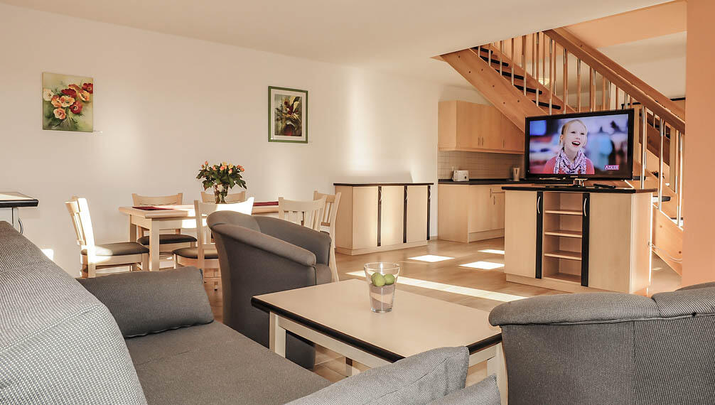 Wir haben für Sie 9 Ferienwohnungen mit einer Wohnfläche von 40 - 80 m², davon 2 Masionettewohnungen, 4 barrierefreie Ferienwohnungen und eine behindertengerechte Ferienwohnung. Die Ferienwohnungen verfügen über eine Terrasse bzw. einem Balkon, komfortable Ausstattung mit getrenntem Wohn- und Schlafraum und einer modernen Küche.