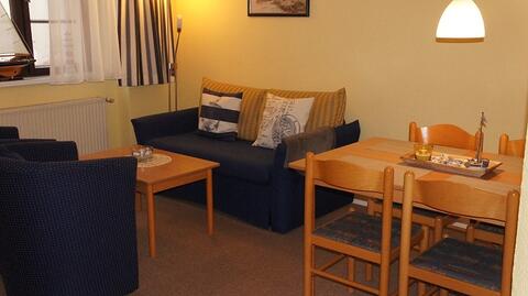Schlafzimmer mit Doppelbett, Radio Wohnzimmer mit Schlafcouch, Sitzecke, Essplatz, Flachbild-TV, Sat-TV Küche mit E-Herd, Geschirrspüler, Mikrowelle, Kühlschrank, Kaffeemaschine, Toaster Bad - Dusche/WC Terrassenbenutzung 1 PKW-Stellplatz je Fewo Abstellmöglichkeit für Fahrräder