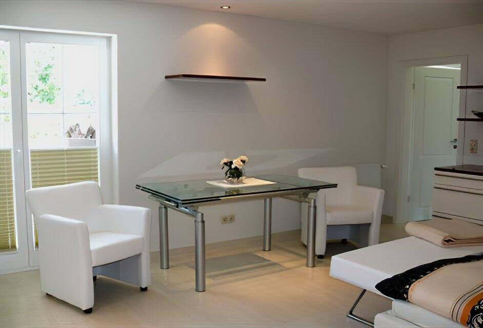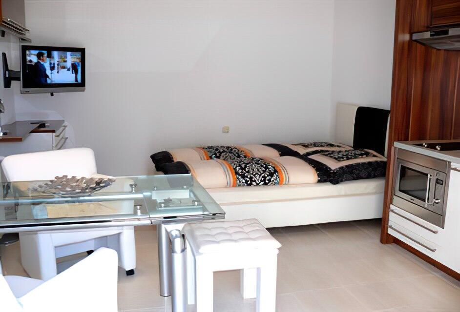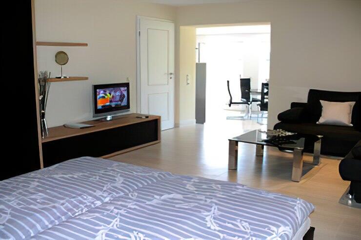 Wohnung- Nr. 1 ca. 33 m² 1- Zimmerwohnung für 2 Personen (Dachgeschoss) Wohn-/ Schlafzimmer ca. 24 m², Flur ca 3 m², Bad ca 5,8 m² mit gr. Dachterrasse ca. 28 m². 1 Aufbettung 10.- €/Tag möglich Wohnung- Nr. 2 ca. 30 m² 1- Zimmerwohnung für 2 Personen (Dachgeschoss) Wohn-/ Schlafzimmer ca. 23 m², Bad ca 6,5 m² ohne Balkon; jedoch mit reservierter Sitzgruppe im Gartenbereich Wohnung- Nr. 3 ca. 45 m² 1- Zimmerwohnung für 2 - 4 Personen (Dachgeschoss) Hochbett im Spitzboden, Wohn-/Schlafzimmer ca. 39 m², Bad 6 m² ohne Balkon; jedoch mit reservierter Sitzgruppe im Gartenbereich Wohnung- Nr. 4 ca. 58 m² 3- Zimmerwohnung für 2 - 4 Personen (Erdgeschoss) Wohnzimmer ca. 29 m² (Wintergarten), Schlafzimmer I ca. 12 m², Schlafzimmer II ca. 11 m², Bad ca 6 m²; Terrasse ca. 20 m² Wohnung- Nr. 5 ca. 42 m² 2- Zimmerwohnung für 2 - 4 Personen (Erdgeschoss) Wohn-/ Schlafzimmer ca. 23 m², Schlafzimmer ca. 13 m², Bad ca 6,5 m²; Terrasse ca. 20 m² Wohnung- Nr. 6 ca. 38 m² 2- Zimmerwohnung für 2 - 4 Personen (Erdgeschoss) Wohn-/ Schlafzimmer ca. 19 m², Schlafzimmer ca. 14 m², Bad ca 5 m²; Terrasse ca. 18 m² Wohnung- Nr. 7 ca. 54 m² 1- Zimmerwohnung für 2 Personen (Erdgeschoss) Wohn-/ Schlafzimmer ca. 48 m², Bad ca 5,5 m²; Terrasse 18 m² 1 Aufbettung 10.- €/Tag möglich Wohnung- Nr. 8 ca. 49 m² 1- Zimmerwohnung für 2 Personen (Erdgeschoss) Wohn-/ Schlafzimmer ca. 28 m², Wohnküche ca. 16 m² (im Wintergarten)Bad ca 5 m²; Terrasse 16 m² 1 Aufbettung 10.- €/Tag möglich Wohnung- Nr. 9 ca. 32 m² 1- Zimmerwohnung für 2 Personen (Dachgeschoss) Wohn-/ Schlafzimmer ca. 20 m², Flur ca 6,5 m², Bad ca 6,5 m² Balkon ca. 10 m² Wohnung- Nr. 10 ca. 27 m² 1- Zimmerwohnung für 2 Personen (Dachgeschoss) Wohn-/ Schlafzimmer ca. 24 m², Flur ca 3 m², Bad ca 5,8 m² mit gr. Dachterrasse ca. 28 m². 1 Aufbettung 10.- €/Tag möglich