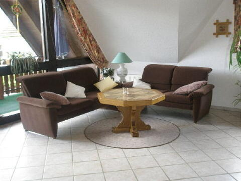Großzügig eingerichtete "Nichtraucher - Ferienwohnung" (80 qm.) Auf dem Balkon, der sich direkt am Wohnzimmer befindet, darf jedoch geraucht werden. Unsere mit 3 Sternen ausgezeichnete Ferienwohnung (80 qm.) liegt im ersten Obergeschoß mit abgeschlossener Etage. Das Wohnzimmer mit Essplatz ist ausgestattet mit digitalem Sat-TV und Kassettenrecorder mit CD-Spieler. Weiter befinden sich 2 Schlafzimmer, eine eingerichtete Küche und eine DU/WC. Von unserem überdachtem Balkon 14 qm., haben Sie eine schöne Aussicht. Ein kleines Reisebett und Hochstuhl stellen wir kostenlos zur Verfügung. Die Betten sind schon gemacht für Sie.