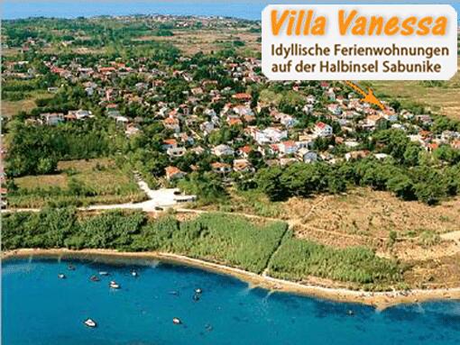 Die Ferienwohnungen in Kroatien, Villa Vanessa liegen auf einer Halbinsel Namens Sabunike. Das Dorf Sabunike ist ca. 20 km von Zadar entfernt. Die Ferienwohnungen und Appartements befinden sich in einer ruhigen Seitenstraße und sind 400m vom schönen Sandstrand entfernt. Die Appartementanlage ist im dalmatinischen Baustil erbaut. Die Ferienwohnungen in Kroatien sind modern und komplett eingerichtet und sind für 2-6 Personen geeignet. Sie verfügen über ein bis zwei Badezimmer, eine komplett ausgestattete Küche, einen Balkon oder eine Terrasse, teilweise mit Meerblick. Dazu bieten wir Ihnen Gartengrill an, sowie Sat TV und WLAN an.Parkplätze sind vorhanden. Die Appartements in Sabunike liegen auf einer sandigen Halbinsel (Länge: 7 km, Breite 4 km). Das Klima ist sehr angenehm es sind im Jahr ca. 2540 Sonnenstunden.