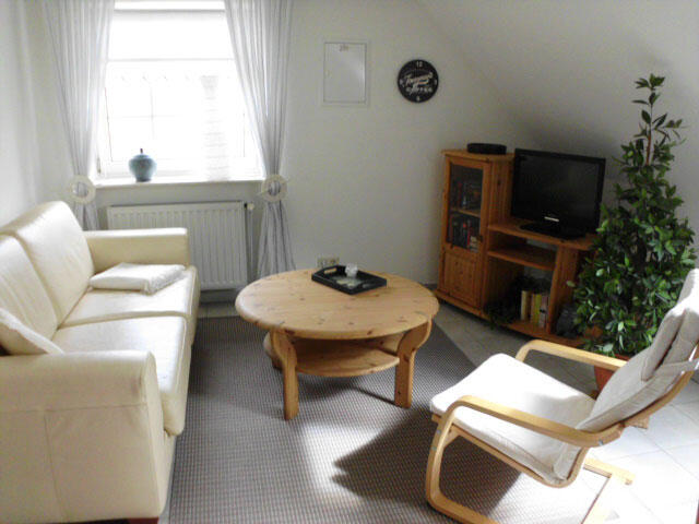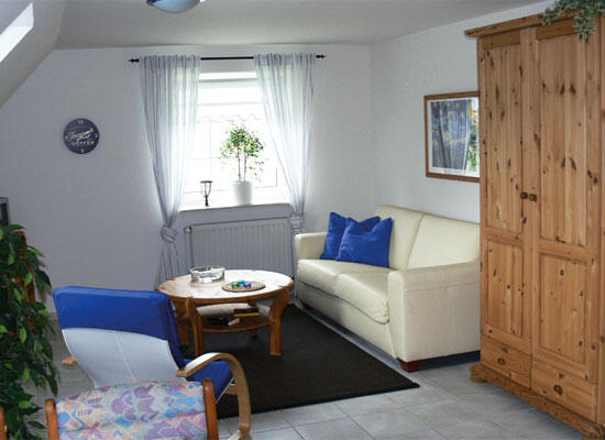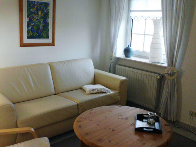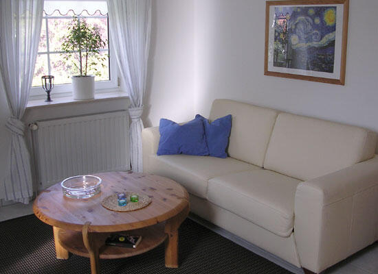 Wohnung »Föhr« (ca. 55 qm): Schlafzimmer mit großem Doppelbett, Wohnlandschaft mit gemütlichem Ledersofa, ausklappbar als vollwertiges Doppelbett, geräumiger Schrank zur Aufbewahrung, großzügige und gemütliche Wohnküche mit großem Esstisch (190 cm) und 4 Stühlen mit großer moderner Einbauküche, Herd mit Ceranfeld, Mikrowelle, Kühlschrank mit Gefrierfach, Kaffeemaschine, Wasserkocher, Toaster, Mixer und kompletter Geschirrausstattung, schönes und helles Bad mit bequemer Duschkabine. Weitere Ausstattungen: Flachbild-Fernseher (digital) und Radio, außerdem WLAN. Wohnung »Amrum« (ca. 52 qm): Ausstattung wie Wohnung Föhr, (in der Wohnung Amrum hat das Bad zusätzlich zur Duschkabine eine Badewanne).