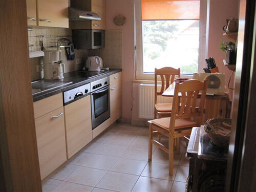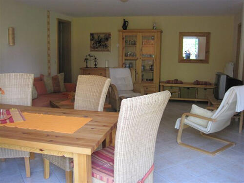 Unsere Ferienwohnung ist genau genommen ein freistehender Ferienbungalow auf unserem Grundstück. Er wurde 2006 renoviert und komplett neu ausgestattet. Der Bungalow ist sehr geräumig, funktionell eingerichtet und liegt mitten im Grünen. Für bis zu 5 Personen bietet er Platz in 2 Doppel-Schlafzimmern. In der voll ausgestatteten Küche finden Sie u.a. Kaffeemaschine, Herd, Backofen, Mikrowelle, Kühlschrank, Spülmaschine usw. Das Bad bietet Ihnen WC, Dusche und eine Badewanne. Unser Ferienobjekt verfügt über eine separate Zufahrt sowie Parkmöglichkeiten unmittelbar neben dem Bungalow. Da wir unseren Gästen stets einen sauberen und angenehmen Aufenthalt bieten möchten, wird im Haus nicht geraucht und Haustiere sind nicht gestattet. Das gesamte Objekt ist sehr gepflegt und wir freuen uns über Gäste, die das genießen möchten.
