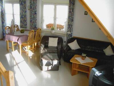 1 Wohnraum mit Kochnische (komplett eingerichtet), 1 Doppelzimmer, Galerie mit 2 Betten und 1 Zimmer mit 2 Betten, Bad/Dusche/WC, Farb-SAT-TV, Balkon, Telefon, WLAN. Wohnraum mit Einbauküche (komplett eingerichtet), 1 Doppelzimmer, 1 Zimmer mit 2 Betten, 1 Dusche/WC, 1 Bad/Dusche/WC, SAT-Farb-TV, sonniger Freisitz (auf der Rückseite des Hauses), Telefon, WLAN. Weitere Schlafmöglichkeiten vorhanden. 1 großes Wohn-Esszimmer mit Kachelofen und Kunst, 2 Doppelzimmer, 1 Einbauküche (separater Raum, kplt. eingerichtet), 1 Du/WC, SAT-Farb-TV, sonniger Freisitz, Telefon, WLAN. Weitere Schlafmöglichkeiten vorhanden.