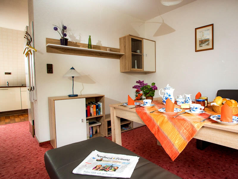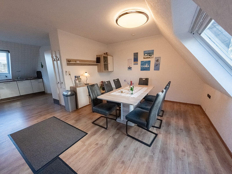 Unsere Ferienwohnung ``Seestern`` Liegt im Obergeschoß unseres Hauses, ca. 800 m vom Nordseedeich entfernt und bis zum Fischkutterhafen 1,6 km! Die Wohnung hat einen sep. Eingang über den Balkon. Sie hat 3 Schlafzimmer mit je Doppelbett, Zustellbett und Reisekinderbettchen möglich. 2 Duschbäder 1 Wohnzimmer, 1 E-Küche mit großer Essecke, Sitzmöglichkeiten im Garten und auf dem Balkon sind weitere Ausstattungsmerkmale. Im Garten steht ein Trampolin, 2 Schaukeln und Sand für die Kleinen. Wattenmeer, schwimmen am Strand, Natur und Kultur erleben – die Halbinsel Butjadingen bietet alles für entspannte Ferien am Meer. Das Meeresrauschen, die schöne Natur und das gesunde Seeklima tragen dazu bei, dass aus Ihrem Urlaub ein gelungenes Ferienerlebnis wird.