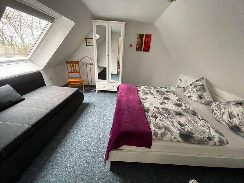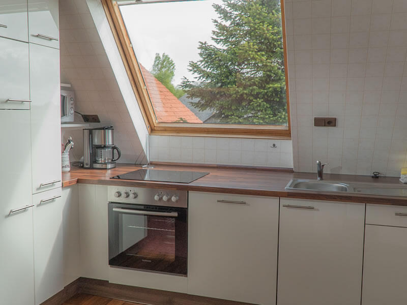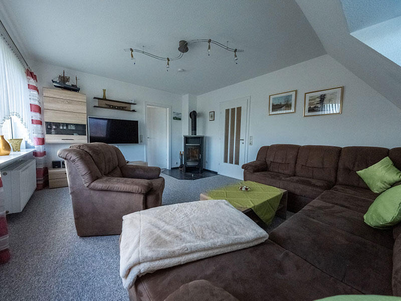 Oberwohnung mit separatem Eingang 1 Schlafzimmer mit Doppelbett 2 Schlafzimmer mit Boxspringbett Terrasse und Balkon 3 Fernseher Radio mit CD-Spieler DVD-Spieler ISDN- Telefon Kostenfreies WLAN Esszimmer Einbauküche Geschirrspülmaschine Mikrowelle, Toaster Herd mit Backofen Handmixer Kühlschrank Kaffeemaschine Eierkocher 2 Duschbäder Waschtisch, Ablage Schwedenofen