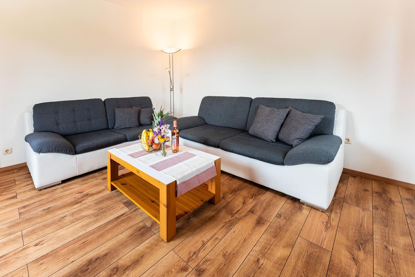Ferienwohnung 1 Diese neue Ferienwohnung befindet sich im ersten Stock. Sie ist 75 qm groß und mit hochwertigem Laminat ausgestattet. Ein heller, freundlicher Eingangsbereich mit Garderobe empfängt die Gäste. Ferienwohnung 2 Unsere schöne neue Erdgeschoßwohnung wird Sie begeistern! Sie betreten die Wohnung und es empfängt sie ein freundlicher, moderner Flur mit Garderobe. 2 separate Schlafzimmer, Wohnzimmer extra, Fön Größe: 75 qm Mindestaufenthalt: 3 Nächte Belegung: 1-4 Personen