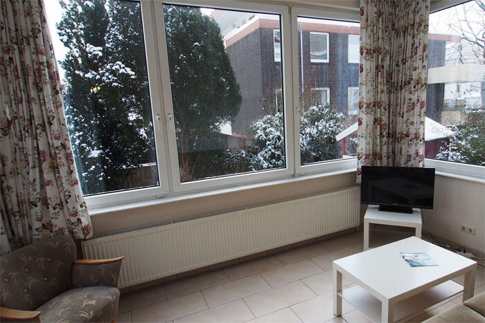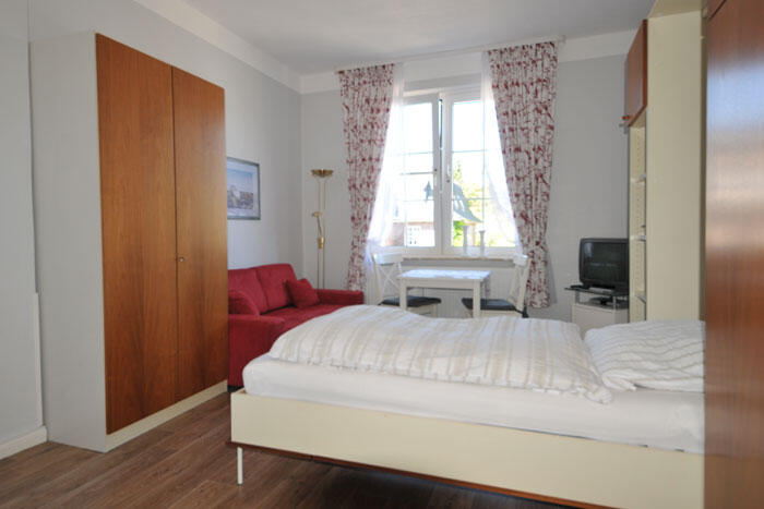 Möwe ist ein Zwei-Zimmer-Appartement im Erdgeschoss mit separatem Schlafraum mit zwei Betten. Zum Wohnraum gehören zwei vollständige Betten zum Ausklappen, eine Küchenzeile mit Backofen, Couch und Sessel. Das neu renovierte Bad hat eine bequeme bodengleiche Dusche. Muschel ist ein Zwei-Zimmer-Appartement im Hochparterre mit separatem Schlafzimmer, einer Küche mit Essecke und einer Mikrowelle, sowie einem Wintergarten mit einer Couch zum Ausziehen für zwei Personen. Das Duschbad ist neu renoviert. Das WC ist separat. Düne ist ein Zwei-Zimmer-Appartement in Hochparterre mit separatem Schlafzimmer, einem Wohnraum mit Küchenzeile inklusive Backofen. Es ist maximal mit drei Personen bewohnbar. Anker ist ein privates Gästezimmer im ersten Stock mit vollständigen Betten zum Ausklappen, einer Sofaecke sowie kleiner Küche und Bad.