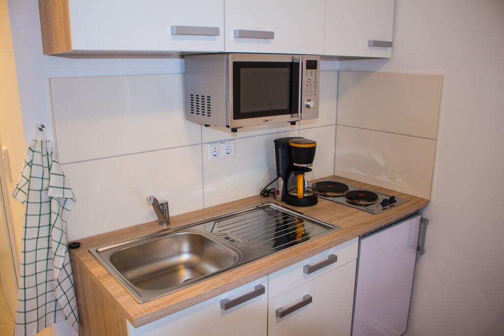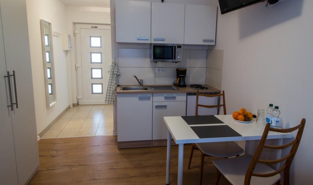 Wir bieten 5 Doppelzimmer in unserem Neubau an. Alle Zimmer sind ebenerdig, mit eigener Dusche/ WC und einer komplett eingerichteten Pantryküche zur Selbstversorgung ausgestattet. Auf den Zimmern finden Sie ebenfalls Sat-TV sowie kostenfreies W-Lan.