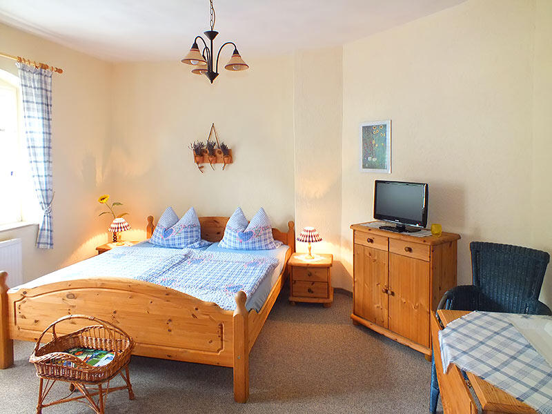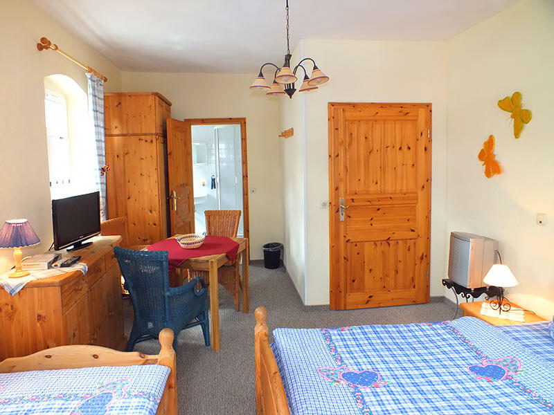 Unsere Gästezimmer sind gemütlich im Landhausstil mit Echtholzmöbeln eingerichtet und mit DU / WC, SAT-TV, Heizung und Fön ausgestattet. Terrasse mit Gartenmöbeln, Getränkekühlschrank, Unterstellmöglichkeit für Fahrräder, Parkplatz kostenfrei 50m vom Haus. Alle Zimmer sind Nichtraucherzimmer.