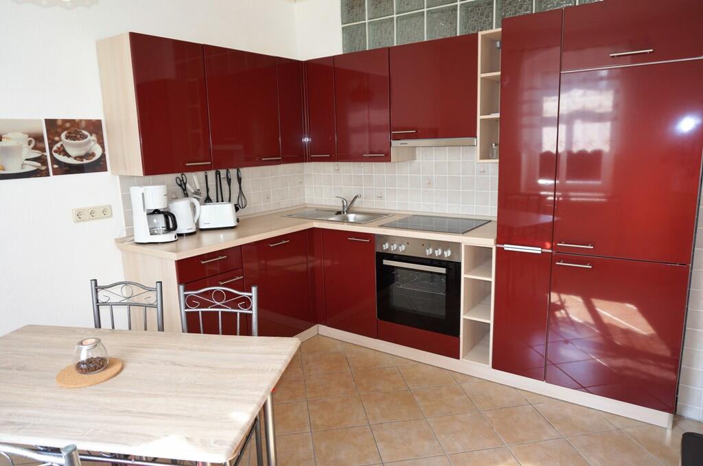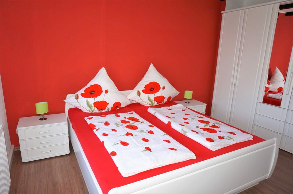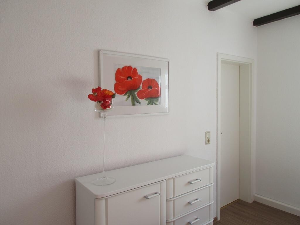 Das Ferienhaus bietet für Sie Platz auf 80 m². 2 Schlafzimmer mit bequemen Doppelbetten, eines davon befindet sich im Erdgeschoss des Hauses 1 Wohn-/Schlafraum mit ausziehbarer Doppelschlafcouch 40 Zoll Flachbildfernseher Essplatz für bis zu 6 Personen 1 vollausgestattete moderne Küche 4 Platten-Elektroherd mit Backofen, Kaffeemaschine, Wasserkocher, Toaster, Geschirrspülmaschine, Kühl-/Gefrierkombi 1 Bad mit Badewanne, Dusche, WC und Waschmaschine sowie Fön Balkon mit Sitzmöglichkeit Grill im Garten mit Sitz- und Sonnenecke Parkmöglichkeit und Fahrradstellplatz in Garage möglich Erstausstattung an Bettwäsche; Handtücher, Geschirrtücher sind inklusive Internet über freies WLAN verfügbar Babybettzustellung trotz maximaler Belegung möglich Kinderstühlchen Nichtraucher- und haustierfreies Haus Brötchen-Service auf Wunsch möglich