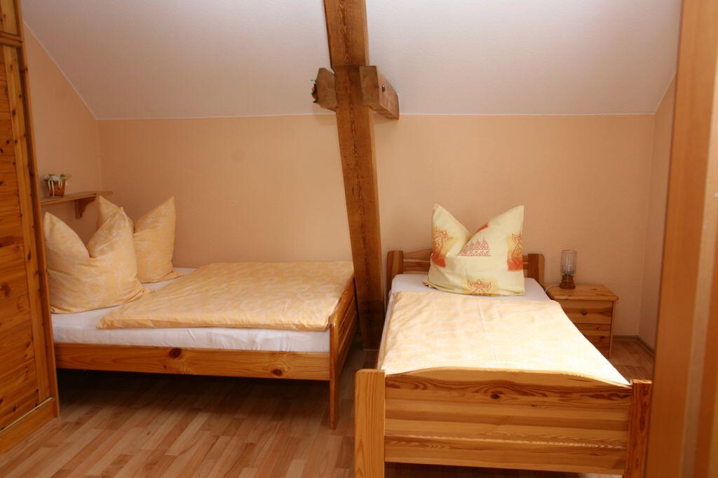 Wir bieten zwei Ferienwohnungen 85 m² mit 4 Betten und 65 m² mit 3 Betten In beiden Ferienwohnungen gibt es einen separaten Schlafraum, einen Wohnraum mit Fernseher und Radio, eine gut ausgestattete Wohnküche mit Kühl-/Gefrierschrank, Mikrowelle und Elektroherd und ein Badezimmer mit Dusche/WC und Haarfön. Ein Kinderbett steht zur Verfügung. Die Terasse ist überdacht und kann von allen Gästen genutzt werden. Auf dem großen Grundstück warten weitere separate Sitzgruppen auf Sie. Parkplätze sind am Haus vorhanden. Nach Absprache können Sie Ihr Haustier mitbringen.